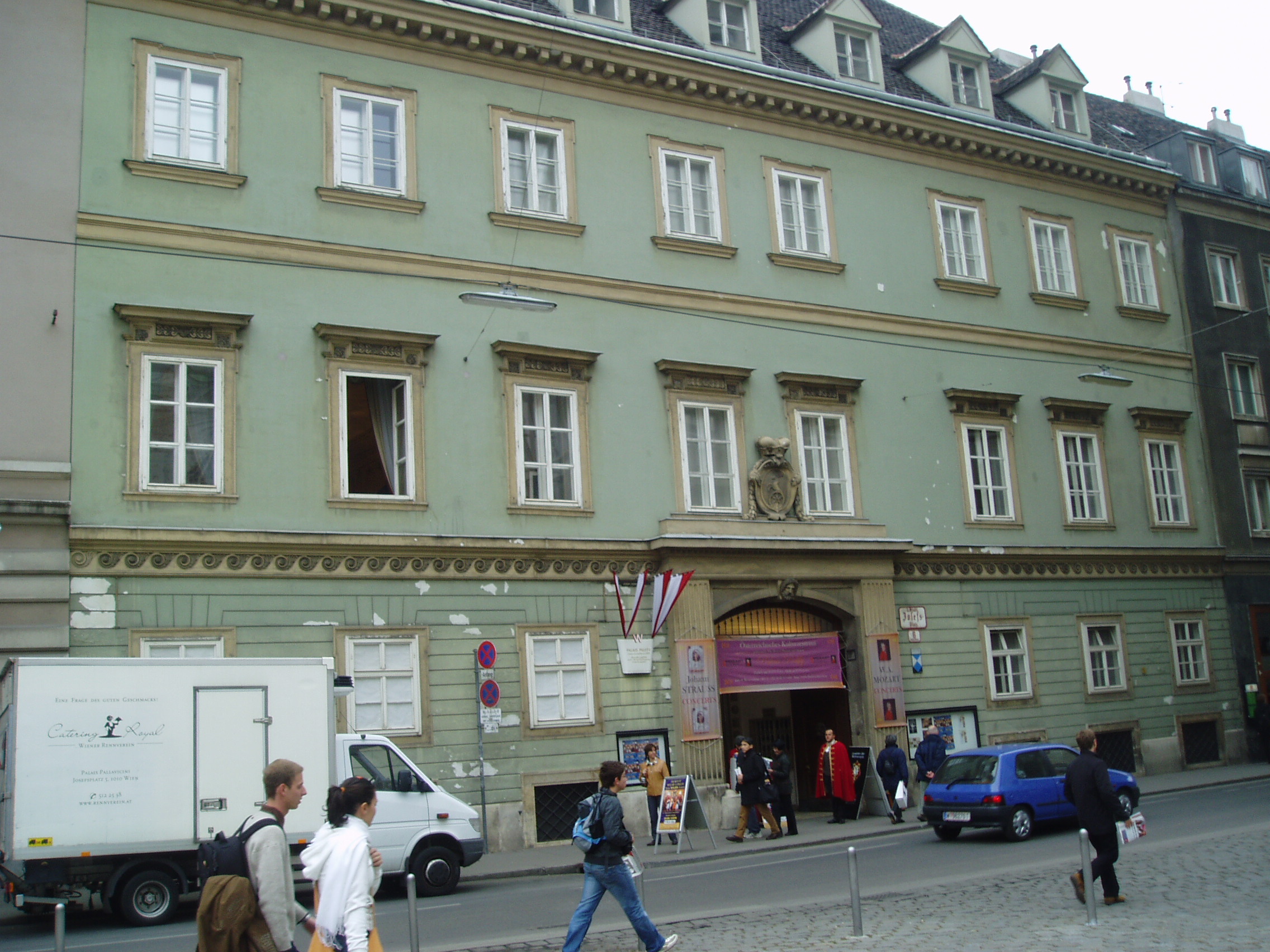 Nyilvános 1107 | 1974 | Josefsplatz 6. Pálffy-palota | A kétemeletes, 1575 körül épült reneszánsz palota 1684-ben került a Pálffy grófok tulajdonába. Manzárdablakokkal már a barokkosítás idejében ékesítették, belső termeit a XIX. század közepén klasszicista modorban korszerűsítették. A második világháború alatt az épület súlyosan megrongálódott, 1956-60 között építették újjá. A palota zenei hagyományait a Habsburg-hű magyar főúri család, Pálffy József kancellár, Pálffy Lipót tábornagy, koronaőr és a többiek vetették meg kamarazene-estjeikkel. A Pálffy-palotában mutatkozott be 1782. október 16-án Bécsben a hatesztendős Mozart, nénjével, Nannerl-lel. A Pálffyak közeli barátságban álltak Mozart salzburgi kenyéradó gazdájával, Hyeronimus Colloredo érsekkel, aki, mihelyt megtudta, hogy a család megbízta Mozartot, adjon zongoraleckéket Pálffy Jozefa Gabriella grófkisasszonynak, a legszigorúbban eltiltotta unokahúgát az efféle erkölcstelen mulatságoktól. |