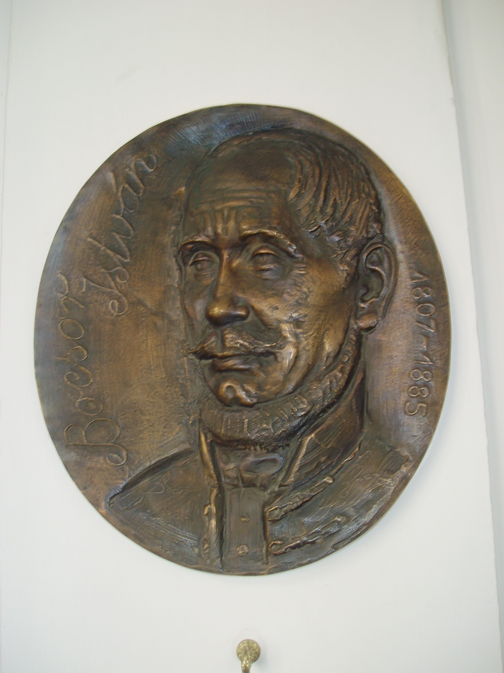 Nyilvános 844 | 1536 | Pápa, Március 15. tér 9. Pápai Református Kollégium Gimnáziuma | A híres pápai Református Kollégium első épülete 1531 és 1752 között a mai Ruszek közben, a Lábasház épületének helyén állott. 1752-ben - Mária Terézia rendeletének következtében, amely megszüntette a szabad vallásgyakorlást - harminckét évig csak a közeli Adásztevelen működhetett. 1784-ben, II. József türelmi rendeletének köszönhetően térhetett vissza az iskola Pápára, s hamarosan felépült a ma Ókollégiumként ismert épület (lásd: Pápa, Petőfi u. 13.), amelyben 1794-ben indulhatott meg az oktatás. Az intézmény 1857-ig működött ott, ekkor átköltözött a Március 15. tér 13-15. számú házba, az ún. Nátus-ba, majd 1895-ben utolsó végleles helyére, ide, a Március 15. tér 9. számú monumentális új épületbe. Az iskola folyosóin számtalan emléktábla, szobor, dombormű idézi az egykori kiváló tanárok, jeles diákok alakját. A képen Bocsor István portrédomborműves emléktáblája látható, amely Nagy János felvidéki szobrász munkája. Bocsor István (Enying, 1807. okt. 18. – Pápa, 1885. jún. 3.) író, tanár. Enyingi jobbágycsalád sarja. 1819-1832 között Pápán tanult, a református főiskolán teológiai és jogi képesítést nyert, majd 1837-től tanított, még az Ókollégium épületében (lásd: Pápa, Petőfi u. 13.). Magyar nyelvű történelemórái a város közönségére is nagy hatást gyakoroltak. 1848-ban az enyingi kerület nemzetgyűlési képviselője volt. A szabadságharc bukása után visszavonultan, tanári munkásságának élt. Alakját Kozma Andor: A karthágói harangok c. versében örökítette meg. Latin nyelvtana öt kiadást ért meg. Pápán a Széchenyi u. 10. sz. házon – ahol lakott – emléktáblája, a gimnázium épületébn levő könyvtárban mellszobra van. Radikalizmusáról tanúskodó, előadásait tartalmazó Világtörténelem (1841) című, illetve Középkori történetek (1863–1864.) című kézirata is ebben a gyűjteményben található. Az Alsóvárosi temetőben nyugszik (lásd: Pápa, Alsóvárosi temető: Bocsor István sírja). A fénykép 2007 áprilisában készült. Felh. irod.: Németh Adél - Szabó Lajos: Pápa. Bp. Panoráma, 1989 http://refi-papa.hu |