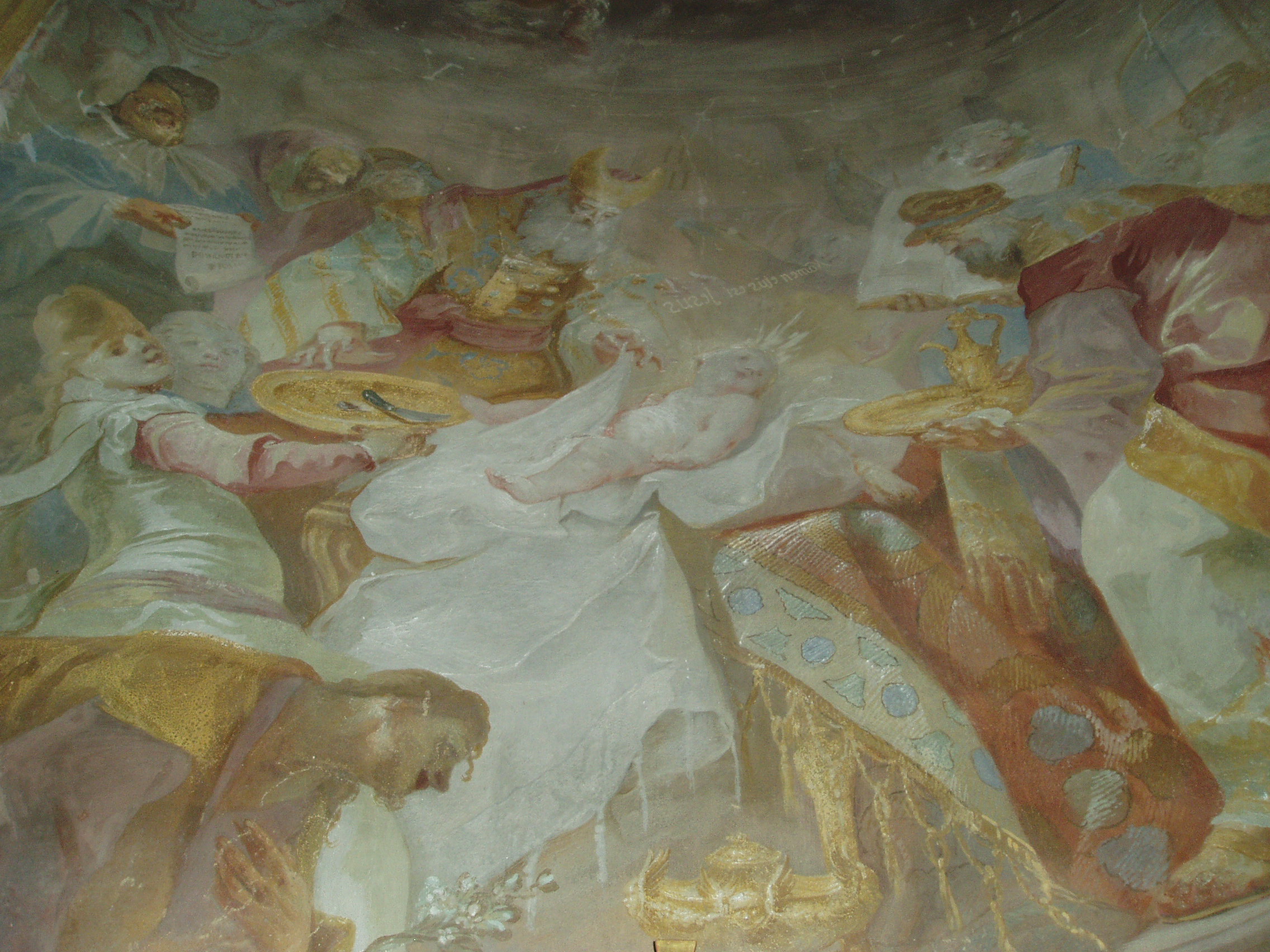 Nyilvános 1030 | 1786 | Sümeg, Bíró Márton utca 1. Plébániatemplom | Sümeg egyik legszebb épülete az Urunk mennybemenetele tiszteletére emelt római katolikus templom. Ezen a helyen már a XIV. században templom állott, melyet Padányi Bíró Márton lebontatott, és 1756-1759 között építtette fel a mai barokk plébániatemplomot. Építészetileg a barokk stílus általános, megszokott mintáit mutatja: nyugati főhomlokzatát hatalmas falpillérek díszítik, fölötte háromrészes főpárkány húzódik, a középrészben az építtető püspök címerével. Az épület igazi értékét Franz Anton Maulbertsch falfestményei jelentik, amelyek az egész templombelsőt beborítják. Tulajdonképpen az egész templom, az oldalfalak és a mennyezet, a hajó, a szentély és a kórus egyetlen, harmonikusan egybeolvadó nagy festmény; a halvány olajzöld, finom sárga és gyöngyház fényű rózsaszín ragyogásában, kitágítva, levegőssé téve a különben kis méretű templom belsejét. Az egész templomon valami könnyed derű uralkodik, nyoma sincs a barokk templomok megszokott, gyakran sablonos pompájának - írja egy régi sümegi útikönyv. Nem véletlenül nevezik a templomot a rokokó Sixtus-kápolnájának. Maulbertsch 33 éves volt, amikor 1757 augusztusában segédeivel megkezdte a templom kifestését. A fiatal, de már jónevű festő élettel telítette a Bíró Márton püspök által pontosan kidolgozott tematikát. A művész két helyen önmagát is megörökítette: a képen az a részlet látható, ahol "A pásztorok imádása" c. festmény bal szélén kezében sajtot tart. Egy másik ábrázolása a kóruson levő festményen található (ez sajnos, még a templom kivilágítása esetén sem vehető ki a templomhajóból), ahol ő is ott van a Bíró Márton püspök előtt hódoló sümegiek menetében. A fénykép 2007 júniusában készült. Felh. irod.: Koppány Tibor - Kozák Károly: Sümeg útikalauz. Veszprém, Idegenforgalmi Hivatal, 1965 Látnivalók Veszprém megyében. Miskolc, Well-PRess, 2004 Sümegi kalauz. Sümeg, Sümegi Fórum Alapítvány, 1993 |