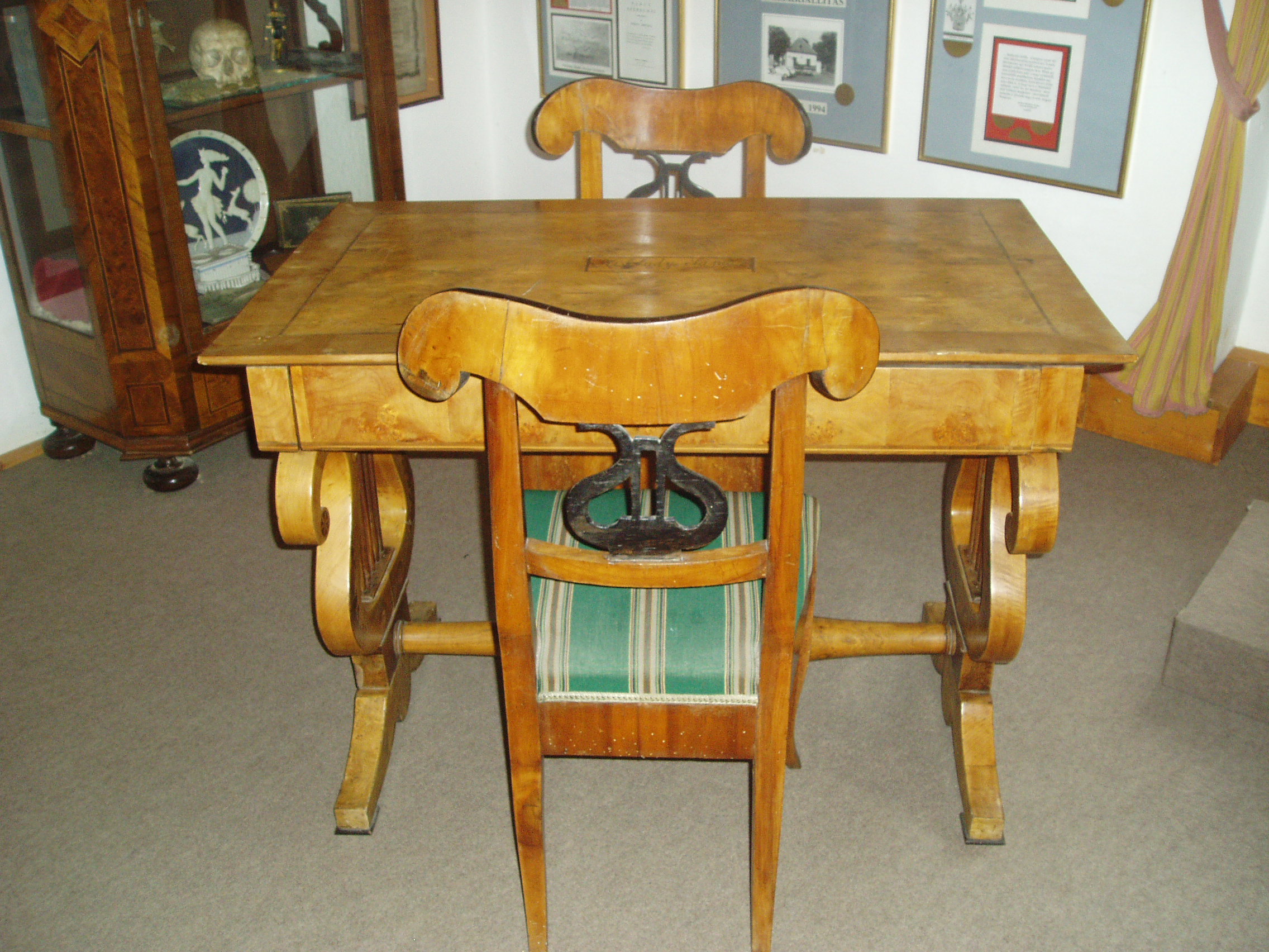 Nyilvános 971 | 1432 | Sümeg, Kisfaludy tér 2. | Ebben a házban, amely ma a Városi Múzeum otthona, született és halt meg Kisfaludy Sándor. A XVII. században épült ház eredetileg a Sándorffy család tulajdona volt, a Kisfaludyakra örökség útján maradt. A XIX. században klasszicizáló stílusban többször is átépítették a boltíves barokk kúriát, ittlakása idején Kisfaludy Sándor is bővíttette. A költő 1772. szept. 27-én látta meg itt a napvilágot. Hat éves volt, amikor a család Tétre költözött (Károly öccse ott született 1788-ban). 1805-ben, házasságkötése után néhány évvel költözött vissza a szülőházába, s haláláig itt volt az otthona. Miután 1832-ben elveszítette szeretett feleségét, Szegedi Rózát, az idős költő újra megnősült, azonban második felesége, Vajda Amália is hamarosan meghalt. A költő ebben a házban halt meg 1844. október 28-án. Sírja a sümegi temetőben van (lásd: Sümeg, Temető). A szülőház 1950 óta múzeum. Szobái közül kettő őrzi egykori híres lakója emlékét. Személyes és családi tárgyai, bútorai, könyvek, képek ismertetik meg a látogatóval a Himfy-versekkel és a balatoni várak romantikus regéit megörökítő műveivel a maga korában nagy népszerűségnek örvendő költő életét és korát. Az első szoba eredeti relikviái a költő által használt asztal és két szék. A fénykép 2007 júniusában készült. Felh. irod.: Koppány Tibor - Kozák Károly: Sümeg útikalauz. Veszprém, Idegenforgalmi Hivatal, 1965 Sümegi kalauz. Sümeg, Sümegi Fórum alapítvány, 1993 Kisfaludy Sándor. Veszprém, Veszprém Megyei Múzeumi Igazgatóság. /Pannon Panteon 1./ |