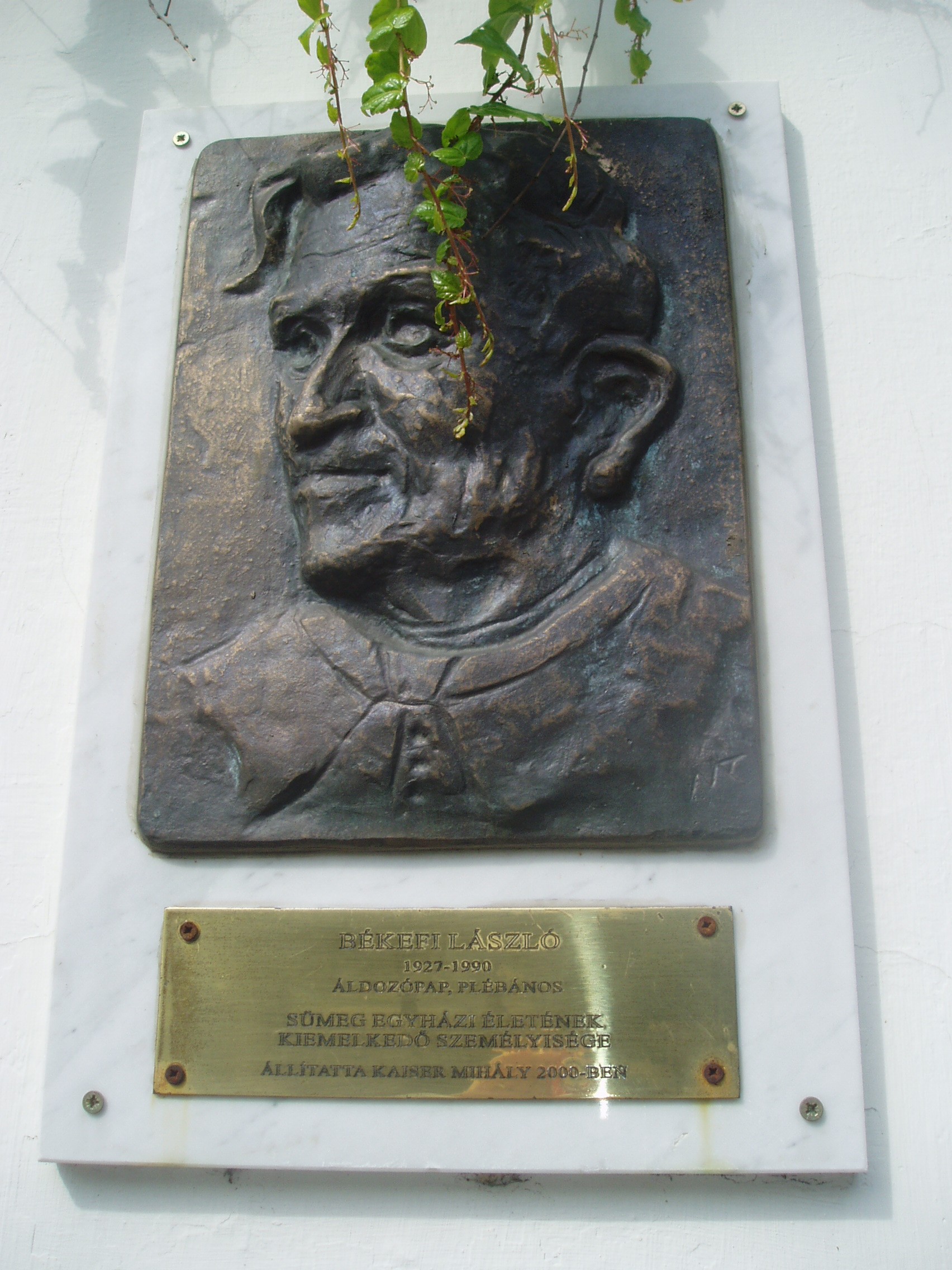 Nyilvános 1061 | 1924 | Sümeg, Panteonfal. Békefi László emléktáblája | A Kisfaludy téren, Kisfaludy Sándor szülőháza előtt alakították ki Sümeg Panteonfalát. A képen Békefi László emléktáblája látható. Békefi László (Celldömölk, 1927. júl. 30. – Sümeg, 1990. márc. 13.) prépost. 1952-ben, Veszprémben szentelték pappá. Két évig Buzsákon, egy esztendeig Búcsúszentlászlón, 1955–1957 között Sümegen káplán. Veszprémben püspöki helytartó, püspöki titkár, majd templomigazgató. 1961-től Sümegen plébános, 1963 után a kerület vezető esperese, 1973-tól prépost. A város mindkét templomát felújíttatta, a plébániatemplom központi fűtést kapott. A Máltai Lovagrend segítségével munkálkodott a várbeli kápolna felújításán. Tagja volt a városi Hazafias Népfrontbizottságnak, a Városvédő- és Szépítő Egyesületnek. 1994-ben – posztumusz – Sümeg város díszpolgára címet kapta. A fénykép 2007 júniusában készült. Felh. irod.: Koppány Tibor - Kozák Károly: Sümeg útikalauz. Veszprém, Idegenforgalmi Hivatal, 1965 Látnivalók Veszprém megyében. Miskolc, Well-PRess, 2004 Veszprém megyei életrajzi lexikon. Veszprém, Veszprém Megyei Önkormányzat Közgyűlése, 1998 |