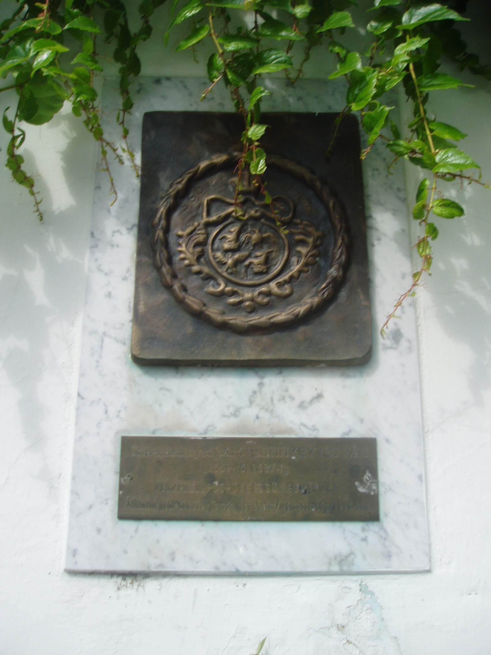 Nyilvános 1003 | 1514 | Sümeg, Panteonfal. Sennyei István emléktáblája | A Kisfaludy téren, Kisfaludy Sándor szülőháza előtt alakították ki Sümeg Panteonfalát. A képen Sennyei István emléktáblája látható, Máger Ágnes alkotása (1996). Állíttatta gróf Sennyey István, Mannheim. Felirata: Kis-zsennyei báró "SENNYEI ISTVÁN 1659-től 1687-ig Veszprém püspöke és Sümeg várura". Nevéhez fűződik a vár (lásd: Sümeg, Vár) akkori helyreállítása. Felépítette a kaputoronynál levõ és róla elnevezett Sennyei-bástyát. A fénykép 2007 júniusában készült. Felh. irod.: Koppány Tibor - Kozák Károly: Sümeg útikalauz. Veszprém, Idegenforgalmi Hivatal, 1965 Látnivalók Veszprém megyében. Miskolc, Well-PRess, 2004 Veszprém megyei életrajzi lexikon. Veszprém, Veszprém Megyei Önkormányzat Közgyűlése, 1998 www.ekmk.hu/emlekhely/Emlekhelyek.html |