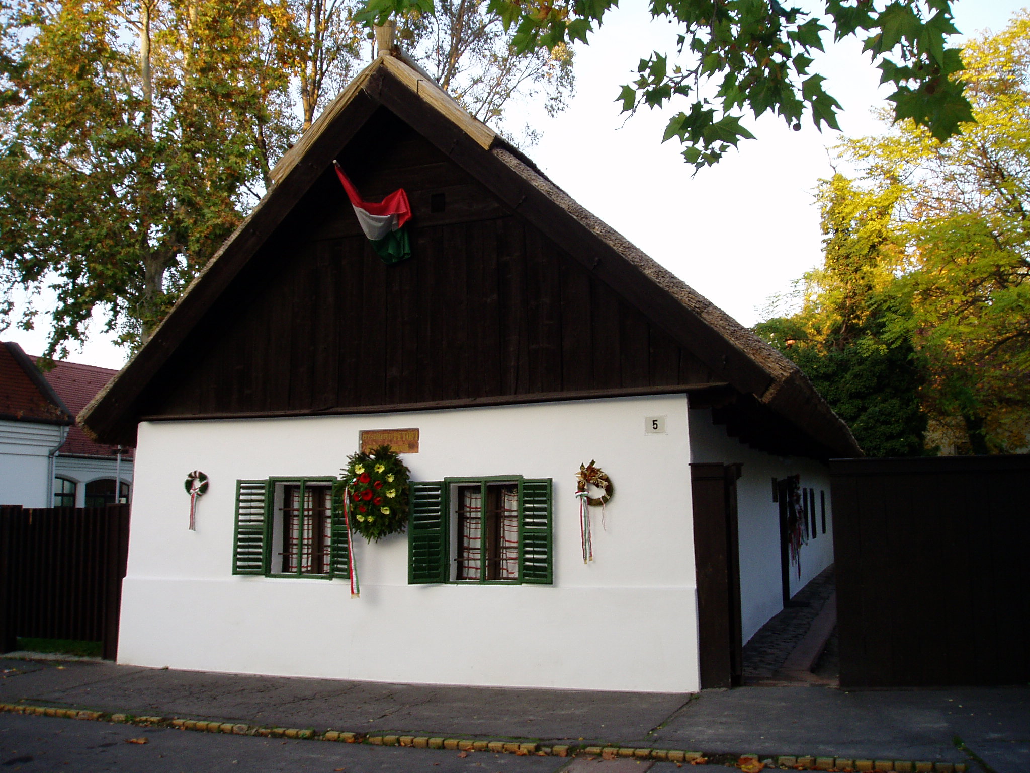 Nyilvános 1146 | 1881 | Kiskőrös, Petőfi tér 5. Petőfi Sándor szülőháza | A népi stílusú lakóház 1790 körül épült. A nádfedeles, deszkaoromzatú, már nem új házat Petrovics István hentes és mészáros 1821-ben vette bérbe, s felesége, Hrúz Mária itt szülte első gyermeküket, Sándort. Az 1790 körül épült zsellérházban kapott helyet a Petőfi Emlékmúzeum. A ház homlokzati márványtábláján ez olvasható: "Itt született Petőfi 1822. december 31-én". A bejárati ajtó szemöldökfája felett a költő sorait olvashatjuk: "Szent a küszöb, melyen beléptem én, / Oh szent a szalma kunyhók küszöbe. / Mert itt születnek a nagyok, az ég / A megváltókat ide küldi be." A ház konyhájában korabeli használati tárgyak láthatók. Az utcai szoba a Petrovics család bútoraival és egykori használati tárgyaival emlékeztet arra, hogy ott született a nemzet nagy költője. A képen látható ágyat az elszegényedett Petrovics család annakidején Dömösön eladta más bútorokkal együtt, s 1890-ben a Magyar Írók és Művészek Társasága kutatta fel és vásárolta meg. A fénykép 2004 októberében készült. Felh. irod.: Látnivalók Bács-Kiskun megyében. /Vendégváró/. Well-Press Kiadó, 2002. Petőfi emlékhelyek a Kárpát-medencében. Kiskőrös, Petőfi Sándor Társaság, 1996 |