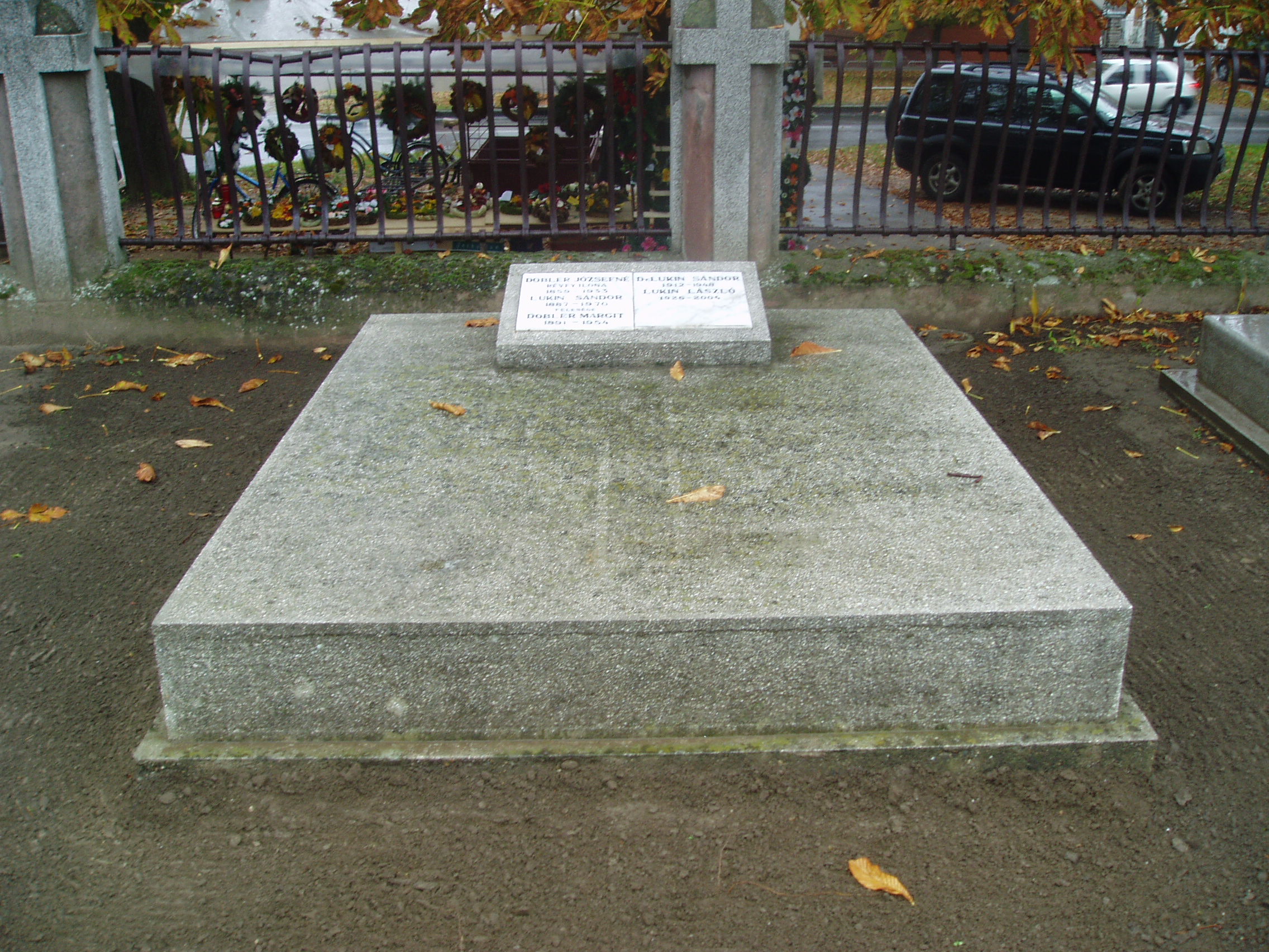 Nyilvános 1070 | 2067 | Baja, Rókus utca: Rókus temető - Lukin László sírja | A Rókus temetőben nyugszik a bajai születésű legendás pedagógus, karmester, egyházzenész Lukin László. 2004. augusztus 18-án, életének 79. évében hunyt el. 1950-től nyugdíjazásáig a fővárosi Fazekas Mihály Gimnáziumban tanított, s mellette személyesen és a televízión keresztül több nemzedéket nevelt zenehallgatásra, zeneszeretetre. Baja díszpolgárának nevét szülővárosában ma általános iskola viseli. Emléktáblát a helyi Liszt Ferenc Zeneiskolában avattak tiszteletére. A fénykép 2007 októberében készült. |