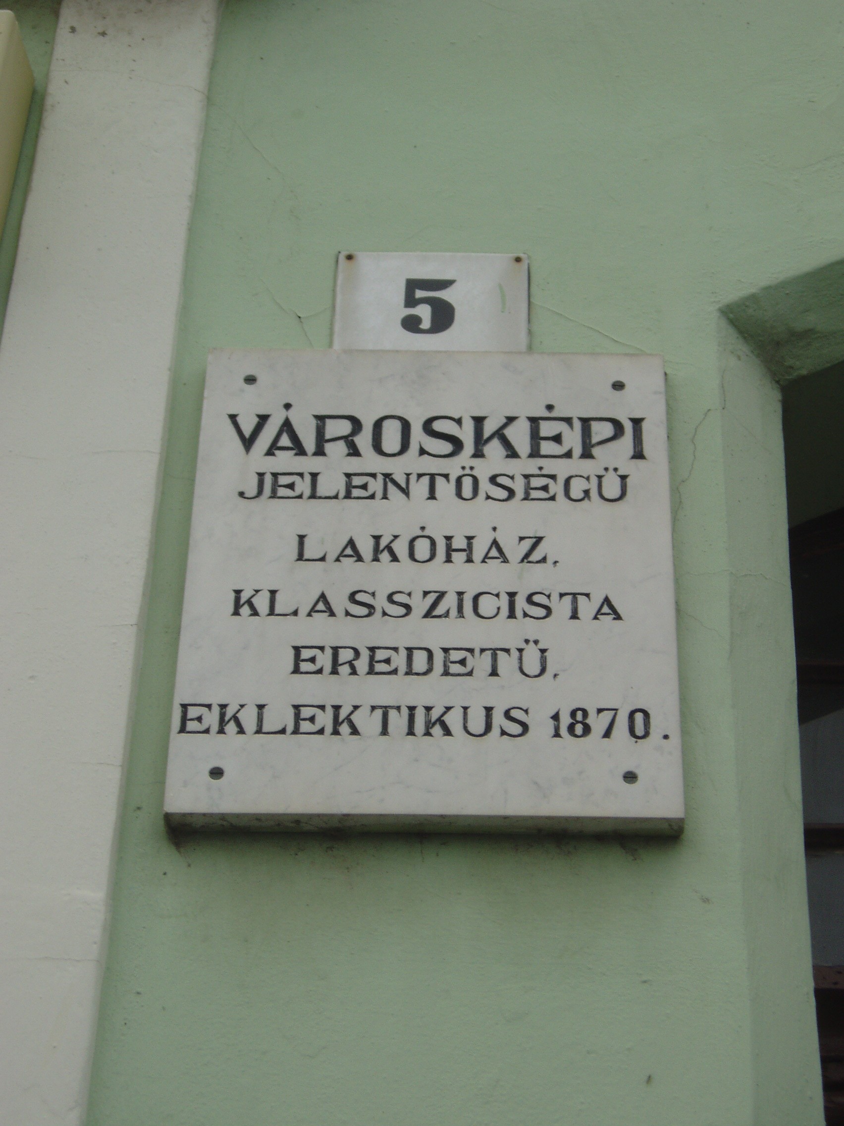 Nyilvános 798 | 1242 | Baja, Szentháromság tér 5. | A bajai Szentháromság teret magyarországi Szent Márk térként emlegetik. Értékét nemcsak épületei, hanem kövezete is adja. A teret, amely három oldalról beépített, s nyitott negyedik oldala a Sugovicára néz, lóhere formában keresztezik az utak. A teret városképi jelentőségű épületek veszik körül. A 5. házszámú, klasszicista eredetű városi palotát 1870 körül építették újjá eklektikus stílusban. A fénykép 2007 októberében készült. Felh. irod.: Látnivalók Bács-Kiskun megyében. Miskolc, Well-PRess, 2002 |