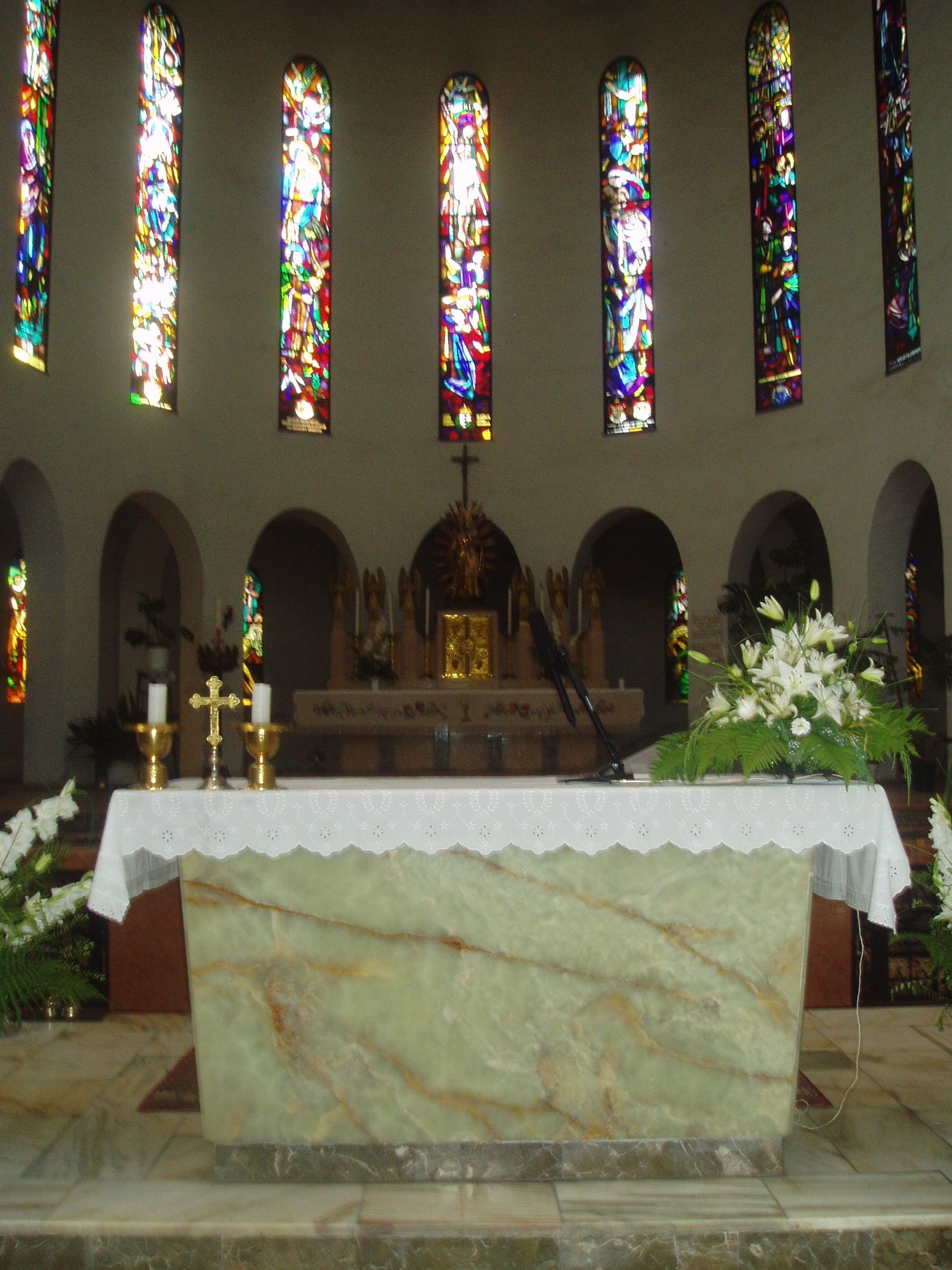Nyilvános 1501 | 4108 | Mohács, Széchenyi tér: Fogadalmi templom | A város fő terének középpontjában áll a Fogadalmi templom hatalmas tömbje. A mohácsi csata 400. évfordulójára emlékezve építették 1929 és 1940 között, Árkay Aladár és Árkay Bertalan tervei alapján. A bizánci stílust követő, historizáló stílusú templom különlegessége, hogy alapjaiba háromezer magyar község, ötvenkét város és huszonöt megyeháza udvarából felvett egy-egy kilós földcsomagokat helyeztek el 1929-ben, jelképezve ezzel az ország összefogását. Az ország első betonhéjazatú építményének kupolája 30 méter magas és 20 méter átmérőjű, a templom 3600 fő befogadására alkalmas. Az épületben lévő műalkotások megörökítik a magyar történelem legfontosabb állomásait. Az íves oldalfalakat a középkori székesegyházakéra emlékeztető, szenteket ábrázoló üvegablakok díszítik, melyek Árkayné Sztehlo Lili (1897-1959) munkái. A kupola nonfiguratív ábrákkal teli ablakai 1984-ben Michael Gaussling német üvegművész munkája nyomán készültek. A templombelső mozaikképei, melyek Kolbe Mihály (1907-1990) mohácsi festőművész munkái, színeikkel és jelképeikkel az 1526-os mohácsi csatára utalnak. A Mohácsi Boldogasszonyként ismert régi Madonna-szobor eredete a török időkre nyúlik vissza. A fénykép 2006 júliusában készült. Felh. irod.: Látnivalók Pécsett és Baranyában. Miskolc, Well-PRess, 1998 www.mohacs.hu www.vendegvaro.hu |