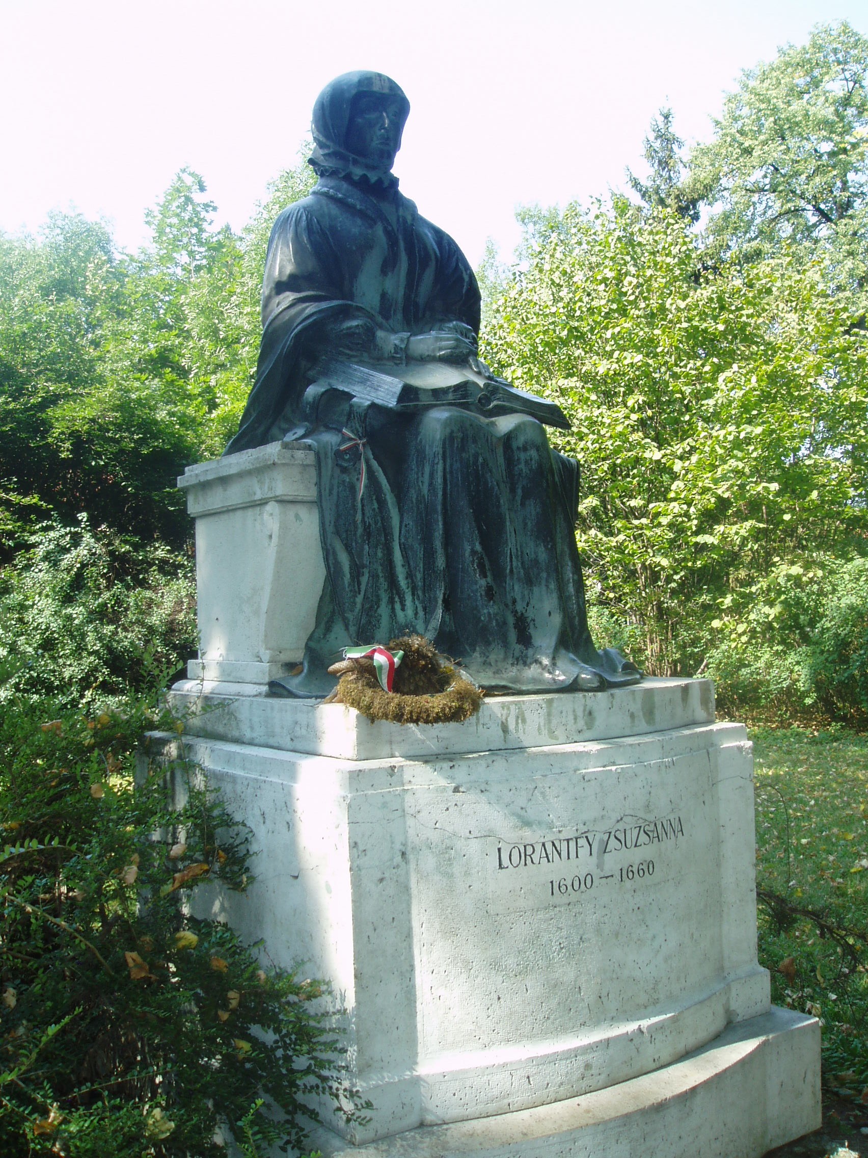 Nyilvános 1019 | 5190 | Sárospatak, Iskolakert: Lorántffy Zsuzsanna szobra | A Református Kollégium (lásd: Sárospatak, Rákóczi u. 1.) bejáratával szemben találjuk az Iskolakertnek nevezett parkot. Az 1980-as években természetvédelmi területté nyilvánított Iskolakert sajátos nemzeti érték, mely egyedülálló az országban. Sétányai mentén Patakhoz kötődő jeles személyiségek szobrai állnak. Lorántffy Zsuzsanna (1600-1660) egész alakos ülő bronzszobra az Iskolakert főútja mentén, a Kossuth kollégiumhoz vezető út tengelyében található. Horváth Géza szobrászművész alkotását 1931-ben leplezték le. Lorántffy Zsuzsanna, I. Rákóczi György felesége sokat tett a kollégiumi oktatás fellendítéséért. Férje 1648-ban bekövetkezett halála után is a városban maradt. Meghívására érkezett a pataki kollégiumba tanárként 1650-ben Comenius. A fejedelemasszony nyomdát is alapított 1651-ben. Patakon hunyt el 1660. április 18-án. A fénykép 2007 augusztusában készült. Felh. irod.: Látnivalók Borsod-Abaúj-Zemplén megyében. Miskolc, Well-PRess, 1995 www.sarospatak.hu/nevezetessegek Erős Zoltán: Magyar irodalmi helynevek A-tól Z-ig. Bp. Kis-Lant Kiadó, 1995 |