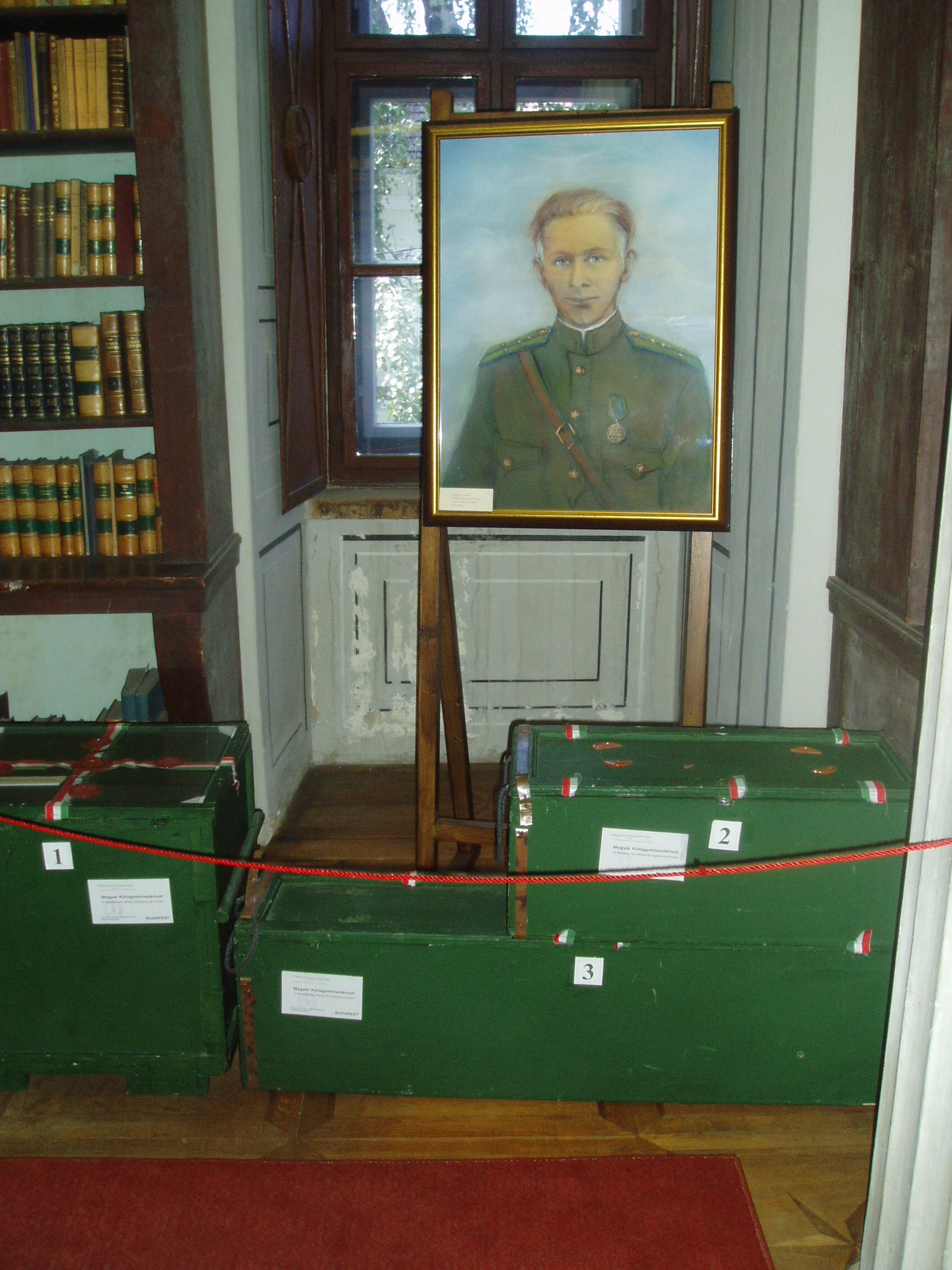 Nyilvános 995 | 1443 | Sárospatak, Rákóczi utca 1. Református Kollégium könyvtára | Az 1531-ben alapított Sárospataki Református Kollégium könyvtára évszázadok óta az ország egyik legértékesebb könyvgyűjteménye. A második világháború előestéjén, 1938-ban az állomány legbecsesebb részét Budapestre menekítették. Sajnos, nem lehetett előre látni, hogy a Sárospatakot elfoglaló szovjet csapatok megkímélték a kollégiumi könyvtárat, míg a Budapestre került kötetek a hadi események során eltűntek. Sorsukról sokáig semmit sem lehetett tudni, csak harminc év múlva derült ki, hogy a Nyizsnyij Novgorod-i Lenin Könyvtár egy részlegében őrzik őket. A rendszerváltás után tárgyalásokba lehetett bocsátkozni visszaadásukról, amelyre, sok vita után 2006. áprilisában kerülhetett sor. Az örömbe azonban némi üröm is vegyült, hiszen a szakemberek szerint még mintegy 150 kötet maradt orosz könyvtárakban vagy múzeumokban, másrészt pedig a tárolás fejében a magyar államnak több százezer dolláros térítést kellett fizetnie. A képen Jegorov szovjet városparancsnok portréja látható: ő volt az, aki 1945-ben megvédte a könyvtár helyben maradt anyagát. A portré alatt pedig azok a ládákat helyezték el, amelyekben 2006 tavaszán visszatérhetett végre az elrabolt könyvek nagy része. A fénykép 2007 augusztusában készült. Felh. irod.: Détsy Mihály: Sárospatak. Bp. Corvina, 1974 Fehér Katalin: Hazatértek a sárospataki könyvek. = Könyv és Nevelés 2006. 2. www.gradatio.hu/nagykonyvtar |