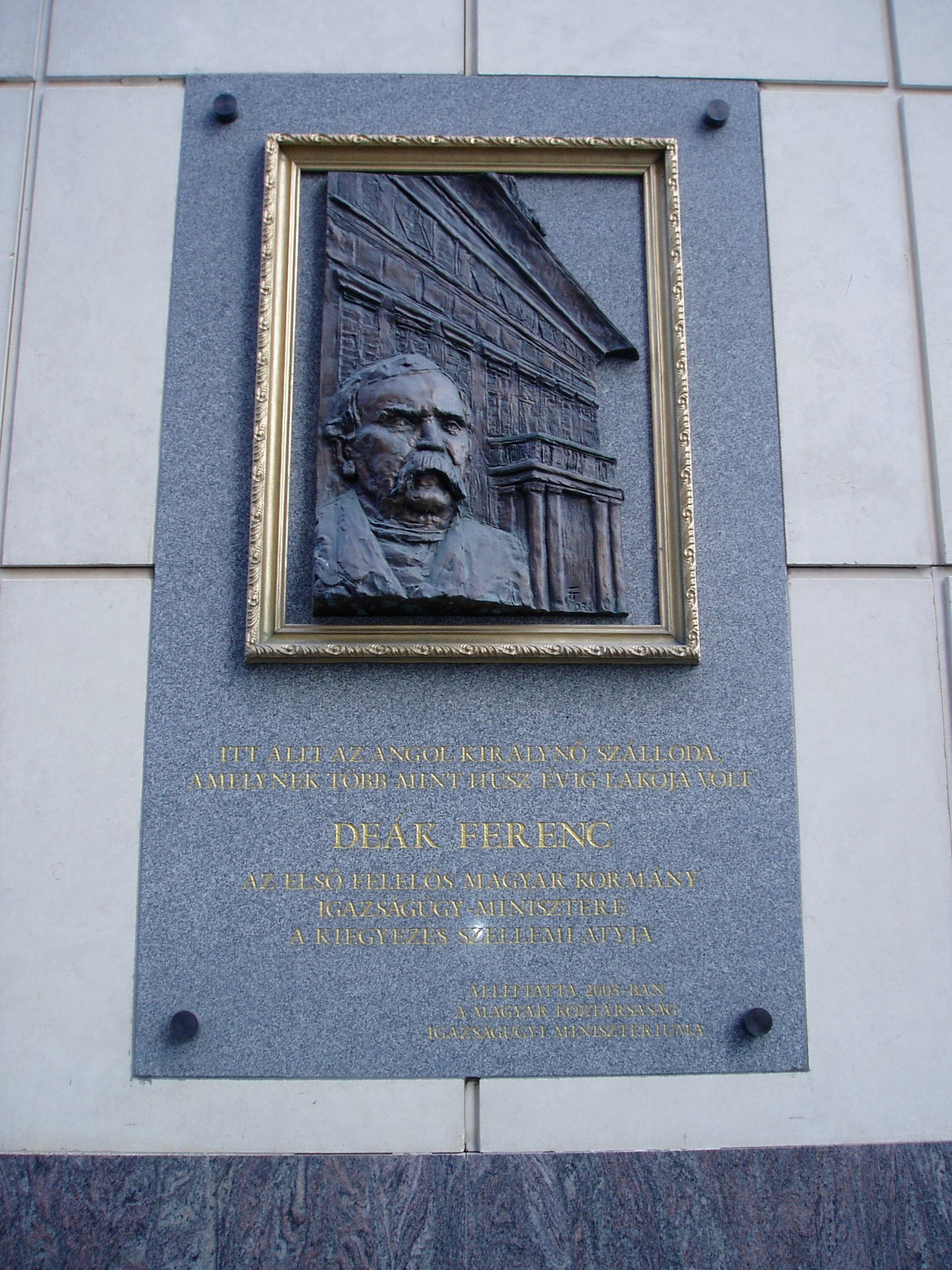 Nyilvános 1079 | 1671 | Budapest V. Deák Ferenc utca 1. | A mai Deák Ferenc utca 1. - Türr István utca 8. - Apáczai Csere János utca 9. számú épületek által határolt területen állt Kemnitzer János szerencsejátékból meggazdagodott tímármester 1792-ben épült kétemeletes monumentális lakóháza. Ennek földszintjén működött a Kemnitzer-, vagy másik nevén Márványos-kávéház, amelynek - a korabeli leírások szerint - nem akadt párja Európában. Az 1838-as nagy pesti árvíz azonban teljesen elöntötte és tönkretette az épületet, de erős alapfalainak felhasználásával újjáépítették, és új tulajdonosa szállodává alakíttatta. 1839-ben már meg is nyílt, s az akkoriban megkoronázott Viktóriáról nevezték el Angol Királynő szállodának. Az új szálloda is európai hírességgé vált vörösmárvány lépcsőivel, fehér, aranyozott oszlopaival és mahagónifával borított falaival. 1849-ben azonban ismét nagy csapás érte: Pest bombázásakor a környékbeli épületekkel együtt súlyosan megrongálódott. 1850-ben Hild József építette újjá, s ismét régi fényében működött. "Fejedelmek lakóhelyének" nevezték, mert lakott benne királynő, császár, sah, cár, trónörökös. A magyar történelembe azonban azzal írta be a nevét, hogy tizenöt éven át, majdnem haláláig itt élt Deák Ferenc, s itt tárgyalt a kiegyezés előkészítése idején a bécsi udvar megbízottaival. Az Angol Királynő az 1900-as évek elejétől kezdte elveszíteni népszerűségét, amikor elvette Dunára nyíló panorámáját és felülmúlta kényelmét az eléje épített luxushotelek sora. 1916-ban megszűnt, épületét, amelyben ezután a Pénzintézeti Központ működött, az 1940-es években lebontották. A fénykép 2005 májusában készült. Felh. irod.: Konrádyné Gálos Magda: Pest-budai szállók emlékeiből 2. = Budapest 1974. 9. Gundel Imre -Harmath Judit: A vendéglátás emlékei. Bp. Közgazdasági és Jogi Kiadó, 1979 |