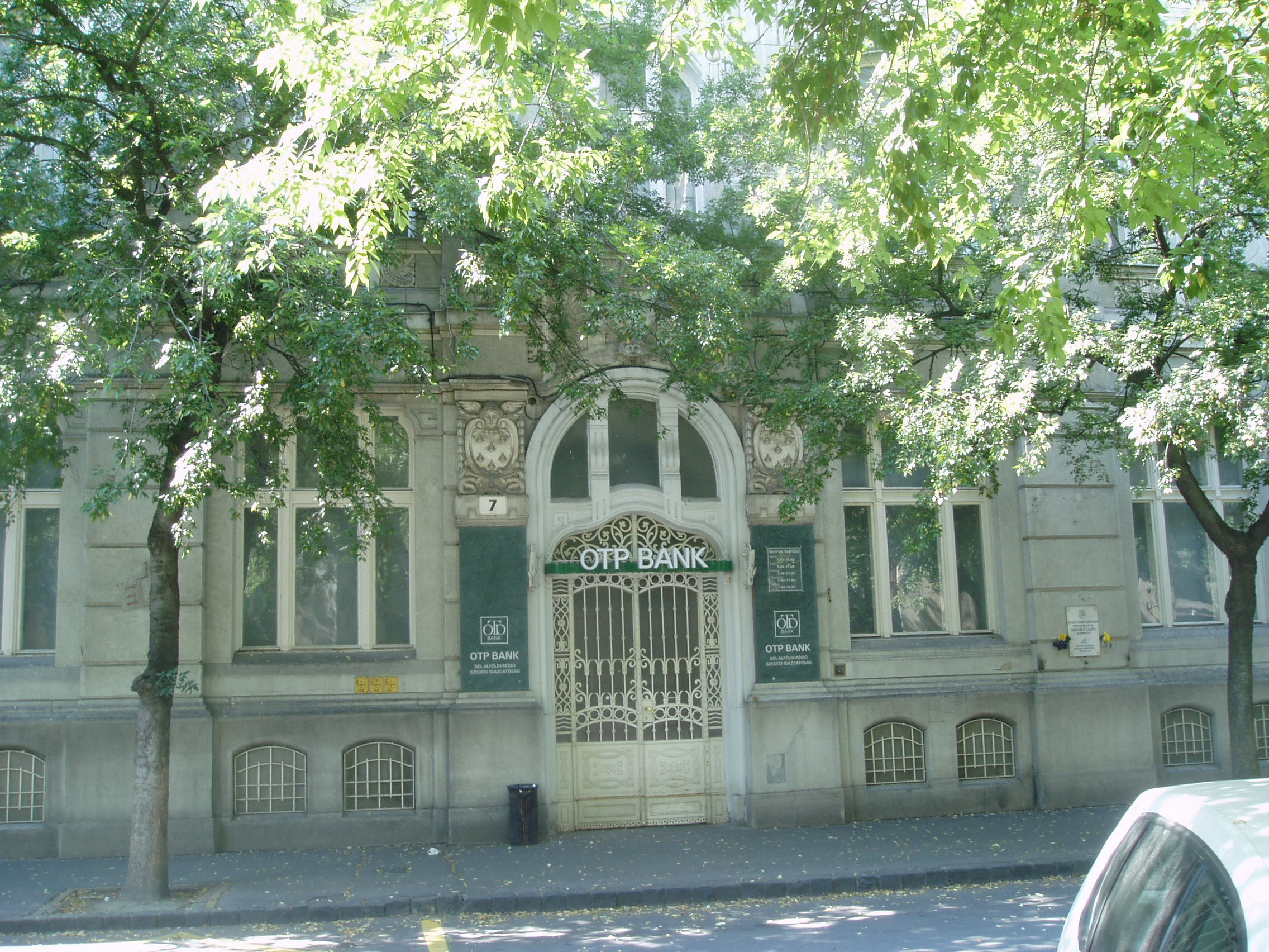 Nyilvános 754 | 1279 | Szeged, Takaréktár utca 7. | A házon emléktábla örökíti meg, hogy ezen a helyen vált a sortűz áldozatává 1956. október 26-án Schwartz Lajos kendergyári ifjúmunkás. Szegeden a fővárosi események hatására október 26-ára az egész város mozgásba lendült. Az előző nap a Széchenyi térre meghirdetett nagygyűlést betiltották, a teret katonai kordonnal vetették körül. A tiltás ellenére a Hungária Szálló környékén összegyűlt 30-40 ezer fős, lakosságból és diákságból álló tüntető menet a Takaréktár utcán át a Széchenyi tér felé tartott, amikor a kordont álló katonaság tűprancsot kapott. A sortűznek egy halálos áldozata és több sebesültje lett, a tüntetők nagy része mégis elvonult az Ady tér felé, a mártír halált halt 18 éves kendergyári munkás holttestével. A fénykép 2007 júliusában készült. Felh. irod.: Kecskeméti Tibor: Október 23. - Megemlékezés. = www.gdszeged.hu/hirek/cikk.html?id=_20041023unnepseg |