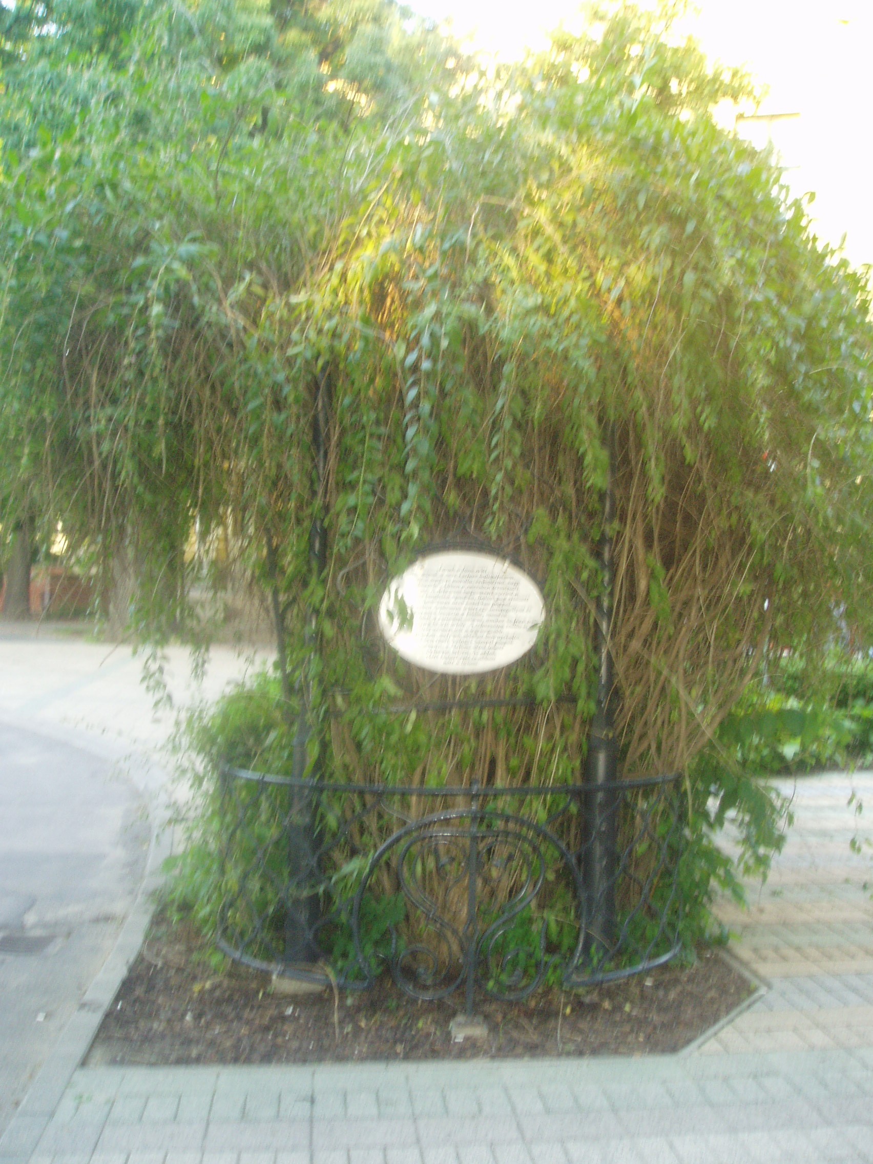 Nyilvános 1032 | 1619 | Debrecen, Hatvan utca 1. Líciumfa | A Nagytemplom háta mögött zöldellő Emlékkert nyugati oldalánál található a fává nőtt líciumtő (semfű-semfa, hivatalos nevén lycium halimofolium). A növény ebben az alakjában botanikai ritkaság, mert általában bokorként, cserjeként ismeretes. A líciumfához egy sokat emlegetett művelődéstörténeti anekdota fűződik (aminek a botanikusok szerint nincs valós alapja): A XVI. században Debrecen városának a reformáció útjára való áttérését megindító Bálint pap a katolikus Ambrosius mesterrel heves vitában sétált itt, az egykori öreg plébánia előtti úton. Kezében egy letört líciumágat tartott és azzal gesztikulált, hogy nagyobb nyomatékot adjon szavainak. Ambrosius mester makacsul hangoztatta, hogy sohasem lesz vallás abból, amit Kálvin tanít. "Akkor lesz ebből vallás - kiáltotta indulatosan -, mikor a lycium fává nő." "Hát akkor fa lesz belőle!" - válaszolta Bálint pap, és lábai előtt a földbe szúrta a líciumágat. S az igénytelen kis gallyacska megfogant s fává terebélyesedett, ágaival befonta a plébánia vasrácsos ablakrostélyát. Mikor évszázadok múlva sor került az öreg épület lebontására, a legendává nőtt líciumfát az ablakrostéllyal együtt érintetlenül hagyták, s ma is ebben az állapotában látható. A fénykép 2006 júniusában készült. Felh. irod.: Papp Antal: Debrecen. Bp. Panoráma, 1976 Kovács Gergelyné: Debrecen. Bp. Panoráma, 1981 |