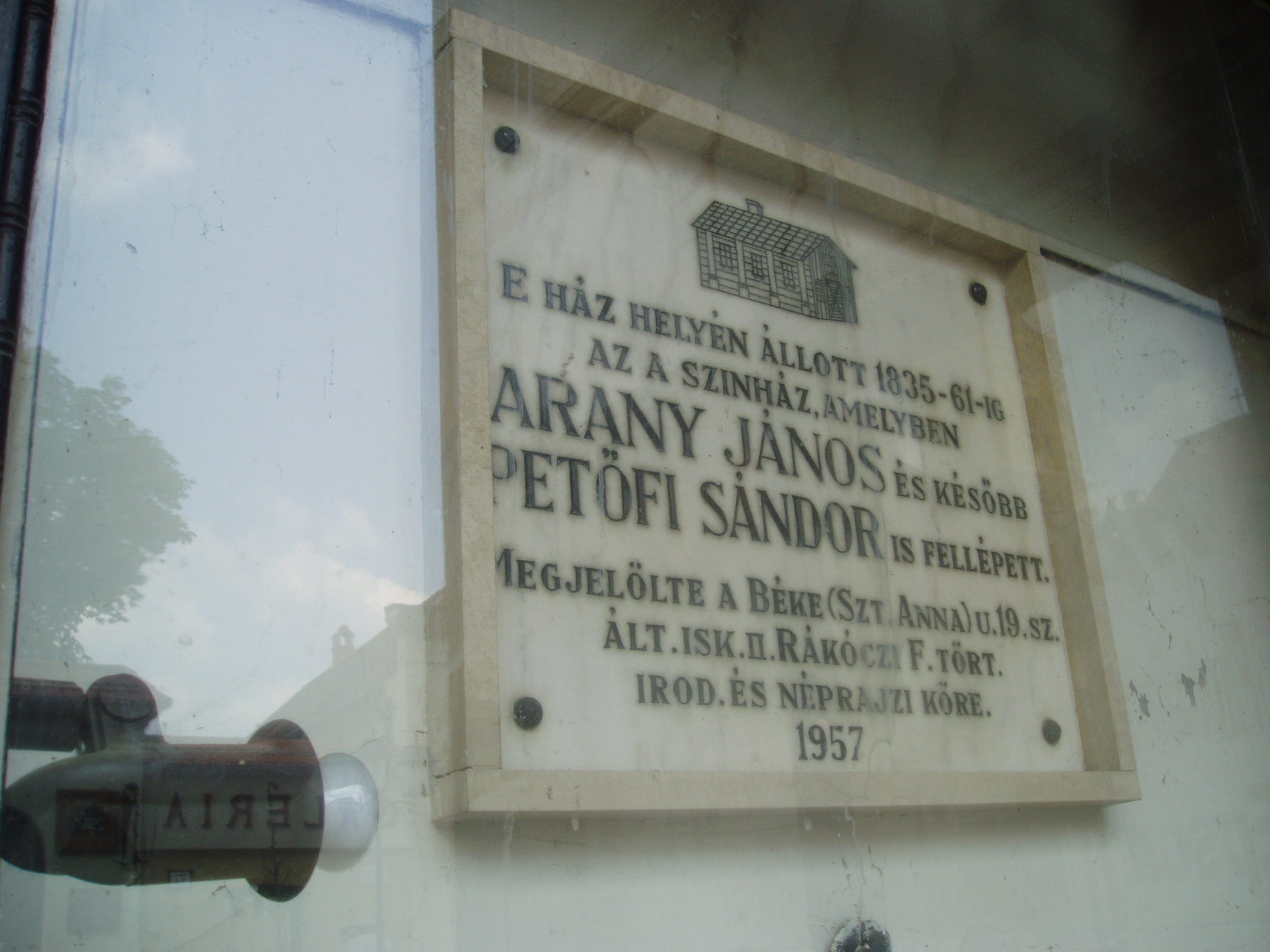 Nyilvános 1437 | 3415 | Debrecen, Batthyány utca 11. | Miután a város korábbi színjátszó–helye, a Varga–szín 1835-ben használhatatlanná vált, mintegy 25 éven át itt, az egykor Harmincados–köz nevet viselő utcában, Nánássy Gábor tanácsnok udvarán tartották a színházi előadásokat. A lehetőséget a háztulajdonos ajánlotta fel, látva a debreceni színészet mostoha sorsát. Az udvaron levő magtárat a város költségén alakították át, bár ez sem volt sokkal alkalmasabb, mint a korábbi játszóhely. Csak a színpadi rész volt deszkapadlóval fedve, a 3–400 embert befogadó nézőtér padlója döngölt agyag volt. Az épületben télen farkasordító volt a hideg, nyáron kibírhatatlan a meleg, úgyhogy, ha csak lehetett, kint játszottak a szabad ég alatt az udvaron. E helyen is sokan felléptek a magyar színészet nagy alakjai közül, mint például id. Lendvay Márton, Fáncsy Lajos, Pergő Celesztin, Kántorné, Udvarhelyiné, Feleki Miklós, Prielle Kornélia. 1836-ban a Kollégiumból kilépő Arany János itt próbálkozott meg a színészettel, huszonkét alkalommal lépett színpadra. Szerencsére a színi pályán nem bizonyult tehetségesnek… 1843/44 keserves, hideg telén az akkor még ismeretlen Petőfi Sándor jelentkezett színésznek az itt játszó társulatba, de a direktor elutasította a vézna fiút. Csak a jegyszedőnő volt jó hozzá, az ő gondoskodásának köszönhette, hogy egyáltalán túlélte azt a telet. Két év múlva, 1846-ban ugyanezen a színpadon felemelő élményben volt része a már országos hírű költőnek: megjelenésekor tapsorkán fogadta és Prielle Kornélia, az aznapi előadás, a Két pisztoly című Szigligeti Ede–darab főszerepében az eredeti dalbetét helyett elénekelte „A virágnak megtiltani nem lehet” című Petőfi–verset. A költő hirtelen fellobbanással azonnal feleségül akarta venni a szép színésznőt (bár éppen Koltóról jött, Júliától), azonban sem a református lelkész, sem a katolikus pap nem volt hajlandó ilyen gyorsan összeadni őket (lásd még: Debrecen, Széchenyi u. 4.). Kossuth kormányának ittléte alatt Laborfalvi Róza, Lendvay Márton, Egressy Gábor játszott itt a sebesült katonáknak és a kormány tagjainak. Nánássy Gábor tanácsnok háza helyén ma emeletes városi bérház áll. Kapubejárata mellett emléktábla olvasható. A fénykép 2006 júniusában készült. Felh. irod.: Papp Antal: Debrecen. Bp. Panoráma, 1976 Kovács Gergelyné: Debrecen. Bp. Panoráma, 1981 A debreceni színészet története. Szerk. Katona Ferenc. Debrecen, 1976 www.csokonaiszinhaz.hu Petőfi emlékhelyek a Kárpát–medencében. Kiskőrös, 1996 |