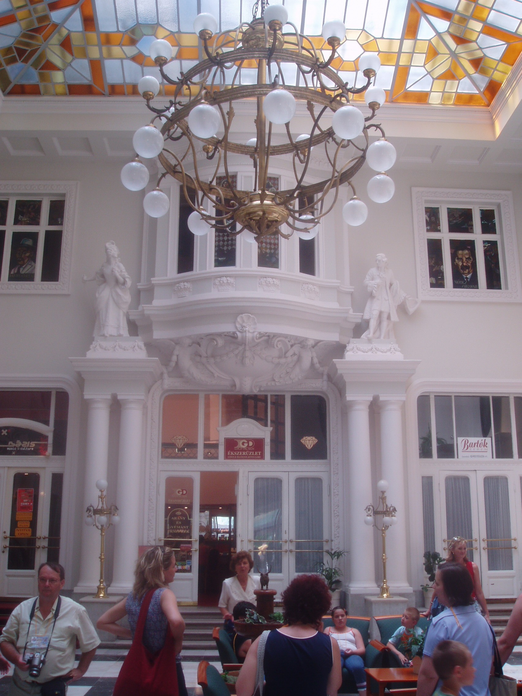 Nyilvános 1071 | 1702 | Debrecen, Piac utca 11-15. Arany Bika Szálloda | A szecessziós épületegyüttes 1913–1915 között épült Hajós Alfréd és Villányi Lajos tervei szerint. Új szárnyát 1976-ban építették hozzá. A négyemeletes főépület homlokzatán olasz kőfaragók által készített szecessziós plasztikák láthatók. A szálloda előterének két oldalát Józsa János színes üvegablakai díszítik. A régi és új szárnyat összekötő hallban egy rokokó pár életnagyságú szobra mellett vezet fel a lépcsősor az egykori díszteremhez. A ma Bartók Béláról elnevezett terem Debrecen 1500 férőhelyes, legnagyobb előadóterme. A tükörteremben Benyovszky István és Veres Géza festményei régi debreceni és hortobágyi életképeket idéznek fel. A mai Aranybika szálló helyén már a XVI. század végén vendégfogadó állt. 1699-ben árverezték el Bika András debreceni polgár egykor itt állott családi házát (a szálloda róla kapta a nevét), s benne négy vendégszobát rendeztek be. A hamarosan szűknek bizonyult, s a Rákóczi–szabadságharc idején erősen meg is rongálódott régi épületre 1799-ben emeletet húztak, majd 1809-ben ismét átépítették. Ekkor készült el vasból vert, bikát ábrázoló cégére, amely 1878-ig hirdette a közönségnek a szálló létét. 1840 körül a földszinten kávéházat nyitotak. 1848-ban egy időre Nádor szállóra keresztelték, s felsőbb parancsra a Bach–korszakban is így hívták. Az öreg épületben számos nevezetes vendég lakott, többek között Széchenyi István, Vörösmarty Mihály, Wesselényi Miklós, Deák Ferenc, Petőfi, Bem tábornok. Nagy Sándor és vezérkara 1849. augusztus 2-án innét indult a csatatérre, ahol a maroknyi magyar sereg nem tudott ellenállni a többszörös túlerőnek. Így estére már Paszkievics herceg és vezérkara ütütt a Bikában tábort s ünnepelték a diadalt, míg Debrecen lakói bezárt házakban, lefüggönyzött ablakok mögött siratták az elveszett reményeket. A XIX. század végére már nemzetközi viszonylatban is jól ismert, patinás szálló kicsinek bizonyult, ezért Steindl Imre tervei szerint pompás új épületet emeltek. A szállodával egyidejűleg kávéháza is megnyílt, első vendége Jókai Mór volt. Az új, egyemeletes szállodaépület pezsgő központja lett Debrecen szellemi és társasági életének. A debreceni írók és művészek, valamint a fővárosból idelátogató barátaik gyakran találkoztak a „közvélemény–asztalnak” nevezett irodalmi törzsasztalnál. 1913-ban elkezdték ennek az épületnek a lebontását is, s a szálló mostani épülete 1915-re lett készen. Az 1920-as években gyakori vendége volt a Bikának Móricz Zsigmond (szobáját születésének évfordulóján emléktáblával jelölték meg) és tizenöt éven át lakott benne Oláh Gábor költő. 1944/45 telén a szálloda adott otthont az Ideiglenes Nemzetgyűlés, majd az Ideiglenes Kormány tagjainak. Felh. irod.: Papp Antal: Debrecen. Bp. Panoráma, 1976 Kovács Gergelyné: Debrecen. Bp. Panoráma, 1981 300 év históriája: egy polgárváros az Aranybikában. Debrecen, Pro Millennium, 1999 |