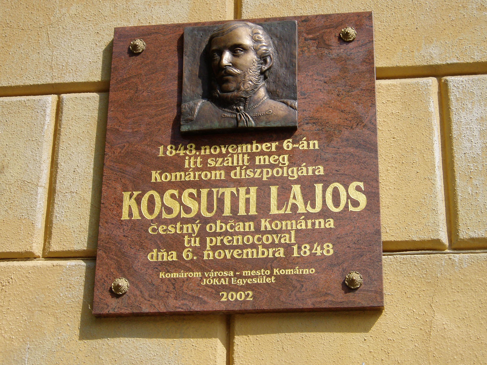 Nyilvános 1334 | 3617 | Komárom (Komárno), Klapka tér 2. | Az eredetileg a Komáromi Első Takarékpénztár székházának 1884-ben emelt, Ney Béla által tervezett épülete ma rendelőintézet. Helyén korábban az ún. Dumcsa–ház állott, ebben székelt 1848/49 történelmi hónapjaiban a magyar térparancsnokság. Az épületet lábasháznak is nevezték városszerte, mert az utcafronton árkádos oszlopai voltak. Az 1849. augusztus 3-án lezajlott győztes ácsi csata után itt, az épület előtt tartottak katonai parádét, amelyen dokumentálhatóan először hangzott fel Egressy Béni friss szerzeménye, a Klapka–induló, szerzője vezényletével, a VIII. hadtest zenekarának előadásában. A mostani épületen Kossuth Lajos emléktáblája olvasható, aki itt szállt meg toborzókörútján, 1848. november 6-án. A fénykép 2005. júliusában készült. Felh. irod.: www.komarno.sk Mácza Mihály: Komárom nevezetességei. Pozsony, Madách-Posonium, 2002 Szénássy Zoltán: A komáromi induló hőse. Rév–Komárom. KT Kiadó, 1998 |