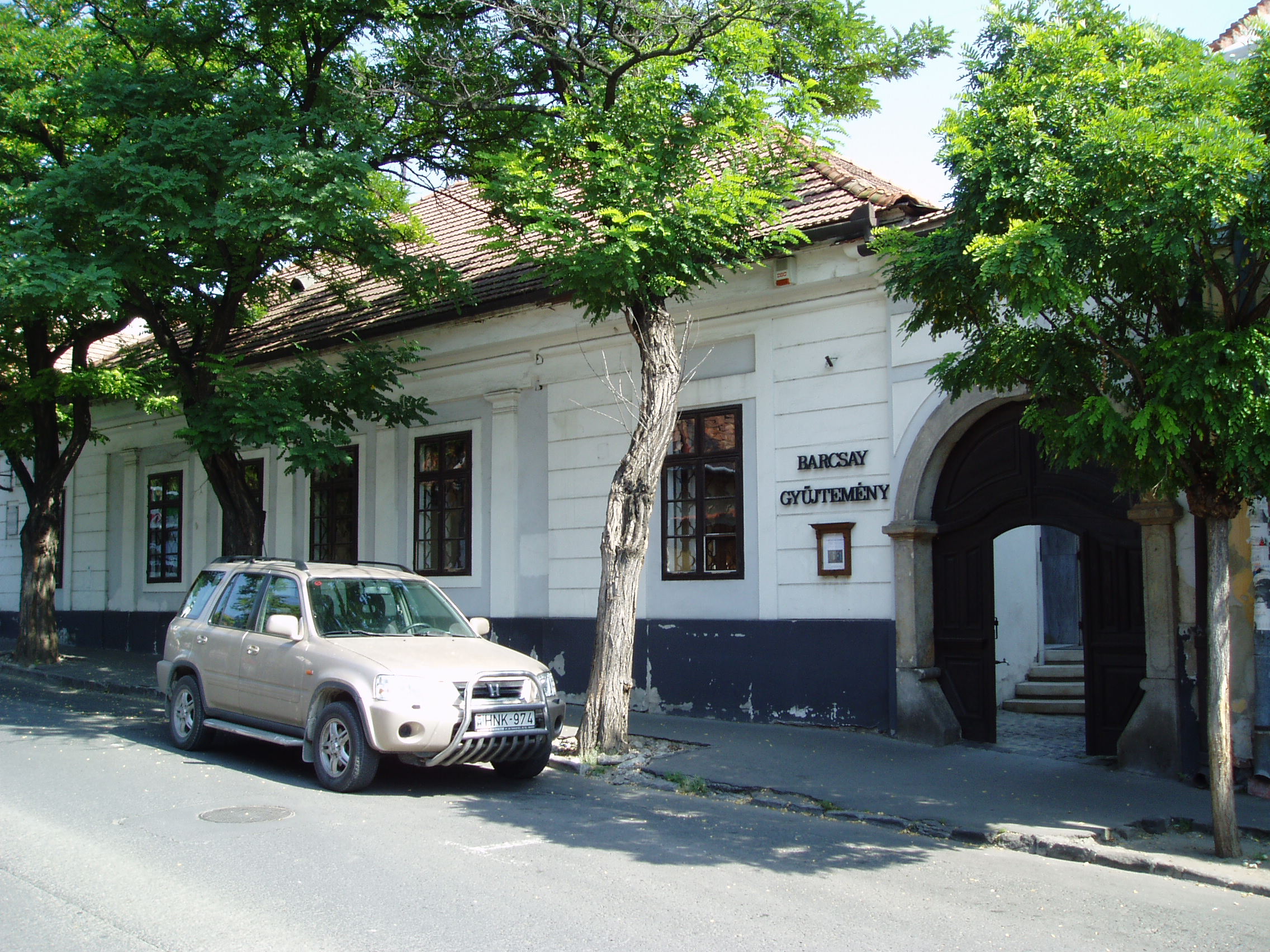 Nyilvános 1095 | 1883 | Szentendre, Dumtsa Jenő utca 10. | A XIX. zázadban épült polgárház 1978 óta a Barcsay Múzeum otthona. Barcsay Jenő (1900-) 1929-ben jött először Szentendrére, s azóta az év egy részét itt töltötte. Ezt írta a város szerepéről életében és művészetében: "Szentendrén éltem és Szentendrén alakítottam ki festészetemet, azt a valamit, amiért nekem érdemes volt küzdenem és élnem. A Szentendrén látott dolgokban, a természetben látott jelenségekben élet van, művészet van. Élnek azok a formák, színek, vonalak, amelyeket csak festő vehet észre..." A ház másik nevezetessége, hogy 1824. december 3-án itt született Stéger Ferenc (1824-1911) operaénekes. A patikusnak tanult fiatalember Európa–szerte híres hőstenorrá vált: rendszeresen vendégszerepelt Prágában, Bécsben, de énekelt Barcelonában, Bukarestben és Itália több színházában. 1848–1852 és 1873–1874-ben a pesti Nemzeti Színház tagja volt, Erkel színpadi hőseinek, valamint a francia és olasz tenorszerepeknek utolérhetetlen megszólaltatója. Élete alkonyán szülővárosába vonult vissza, itt hunyt el; a Katolikus Kálvária kertjében nyugszik. A fénykép 2005 szeptemberében készült. Felh. irod.: Szentendre. Szerk. Sándyné Wolf Katalin. Bp. Panoráma, 1985 Pethő Németh Erika- G. Sin Edit: Írók, költők Szentendrén. Szentendre, 1990 Erkel Ferencz emlékkönyv. Szerk. Fabó Bertalan. Bp. Pátria, 1910 |