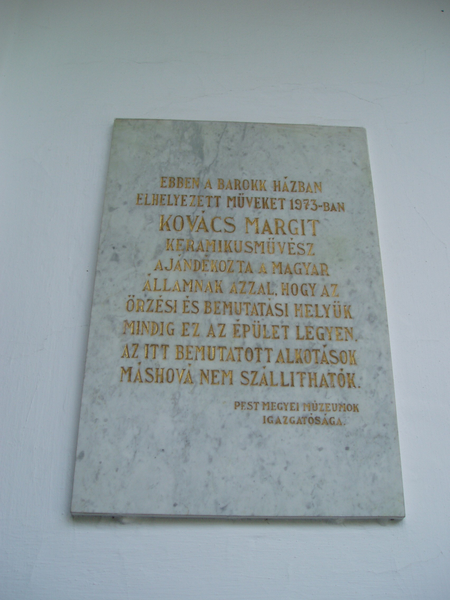 Nyilvános 869 | 1786 | Szentendre, Vastagh Gy. utca 1. Kovács Margit Múzeum | Az 1759-ben emelt barokk stílusú épület előbb sóház, később plébánia, majd Dimsitz Vazul kereskedőháza, végül a Vastagh család lakóháza volt, mielőtt múzeumot alakítottak ki falai között. Kovács Margit (1902-77) keramikus, szobrász, a magyar kerámiaművészet egyik megújítója 1972-ben a múzeumnak adományozta életműve jelentős részét. Ezt mutatja be a kiállítás. Az épület múzeummá alakításakor a díszes barokk kapuzat mellett az 1929-es Korongos relief másolatát helyezték el. 1977-ben udvari épülettel bővítették a múzeumot. A legnagyobb alapterületű kiállító-helyiségben, a dongaboltozatos régi pincében az 1930-as, 1940-es években készült alkotások kaptak helyet, amelyekből a művész biblikus témájú művei emelkednek ki. Az emeleti galéria enteriőrje és fotódokumentációja Kovács Margit otthonának és műtermének állít emléket. A sajátos hangú alkotásoknak, a szépen kialakított múzeumi környezetnek köszönhetően éveken keresztül az országnak ebben a múzeumában fordult meg a legtöbb látogató. (Az épületbelsőben sajnos nem szabad fényképezni! K.K.) A fénykép 2005 szeptemberében készült. Felh. irod.: http://pmmi.hu/muzeumok/kovacsmargit/index.htm www.vendegvaro.hu |