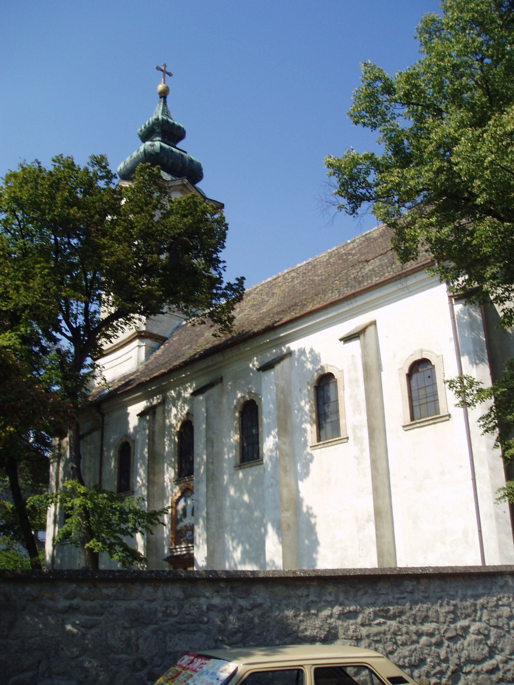 Nyilvános 891 | 1812 | Szentendre, Vujicsics tér: Preobrazsenszka-templom | A középtornyos, barokk Preobrazsenszka-templomot a Boszniából érkezett szerbek építették 1741-1746 között. Klasszicizáló díszítőelemei valószínűleg 1770 után - egy nagyobb felújítás és átalakítás révén - készültek. Toronnyal 1852-ben koronázták meg az épületet. A templomot vastag kőkerítés veszi körül. A kerítésfal korinthoszi oszlopokkal szegélyezett, díszes, kovácsoltvas kapuját a pesti szerb temploméról mintázták, 1803 és 1806 között Olhauser József helybéli lakatosmester készítette. A templom az ortodox (görögkeleti) egyházi műemlékek között kiemelkedő helyet foglal el. Belsejében nagyrészt megmaradt a XVIII. század második felében és a XIX. század elején készült berendezés. Jelentős képzőművészeti érték a templom ikonosztáza, amely a legszebb hazai ikonfalak egyike, az első orosz-ukrán típus szerint épült képfal. A templom körül augusztus 19-én tartják Szentendre legnevezetesebb szerb búcsúját, amellyel Jézus Tábor-hegyi színeváltozásáról emlékeznek meg. Ezeken búcsúkon rendszeresen megjelent és muzsikált Vujicsics Tihamér, aki 1979-ben - Damaszkusz felé tartva - repülőszerencsétlenség áldozata lett. A szerencsétlenség éppen augusztus 19-én vetett véget a szerb származású zeneszerző életének. Rá emlékezve nevezték el róla 2000-ben a templom terét és állították fel emlékkútját (lásd: következő kép). A fénykép 2005 szeptemberében készült. Felh. irod.: Szentendre. Szerk. Sándyné Wolf Katalin. Bp. Panoráma, 1985 www.templom.hu www.vendegvaro.hu |