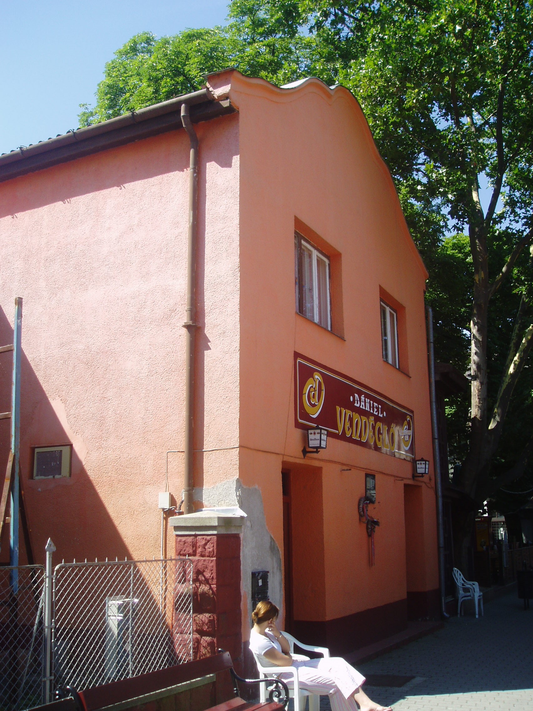 Nyilvános 1131 | 2394 | Siófok, Kálmán Imre sétány 3. | A város szívében, a sétálóutca központi részén található az egykori Kovács cukrászda, amely ma Siófok egyik legkellemesebb hangulatú étterme. Homlokzatán Feleki Kamillra, az operett műfajának kimagasló egyéniségére emlékező fekete márványtábla fogadja a sétálót, aki gyermekkorában ebben a házban töltötte nyarait testvéreivel együtt. A házban apai nagyszülei vezették az akkori vendéglőt. A fénykép 2006 júliusában készült. Felh. irod.: Matyikó Sebestyén József: Feleki Kamill és Siófok. = Siófoki Hírek 2003. júl. 23. |