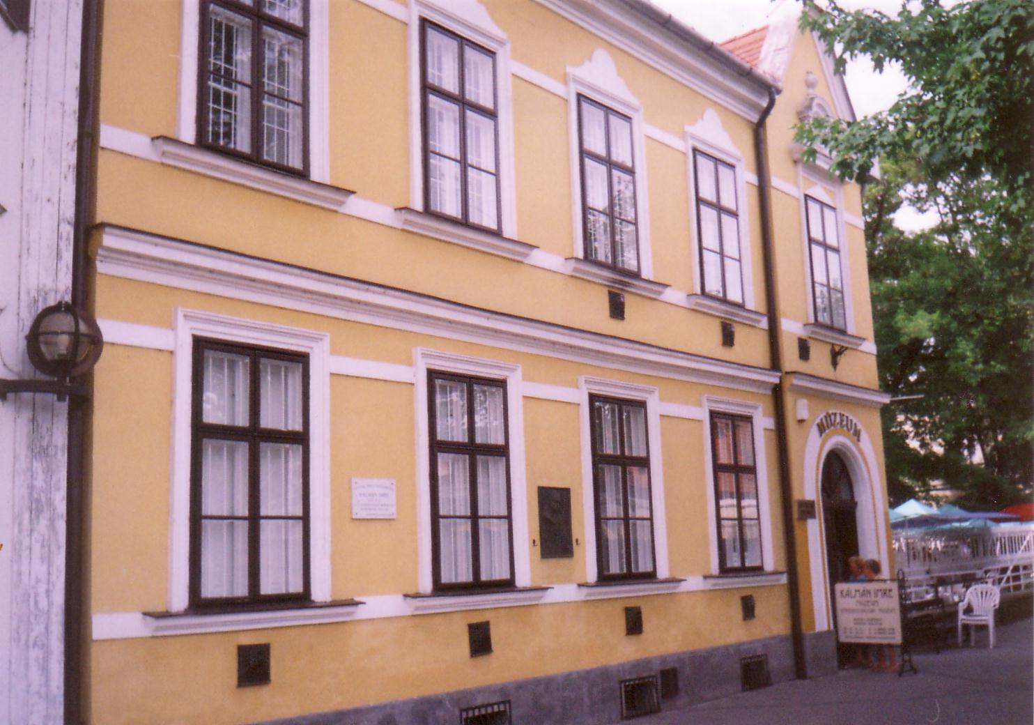 Nyilvános 1170 | 2119 | Siófok, Kálmán Imre sétány 5. | Ebben a vasútállomáshoz közeli házban született 1882-ben a magyar operett egyik legjelentősebb zeneszerzője, Kálmán Imre. Születése napja bizonytalan, még a család sem tudta eldönteni, hogy október 24-én, vagy 25-én jött-e a világra. Édesapja Koppstein Károly Siófokon gabonakereskedő és vállalkozó volt. Édesanyja Singer Paula - szelíd, művészlelkű asszony - megérte fia világhírét. Kálmán Imre a harmadik gyerekként született. Nevét később, a gimnáziumi évek alatt magyarosította Kálmánra. A kis Imre korán tanújelét adta zenei érdeklődésének, tehetségének, amit a családból hozott magával: felmenői között anyai ágon muzsikusok, apai ágon kiváló rabbik, tanítók voltak. Még nem volt hat éves, amikor egy nyáron náluk vett ki szobát Liedl Ferenc hegedűművész, tőle kapott először a kisfiú zenei leckéket. Gyermekként járt először színházban is, a házuk közvetlen szomszédságában egykor állott Nyári Színkörben (lásd: Siófok, Kálmán Imre sétány 6.). Elemi iskolai tanulmányait az egytanerős izraelita népiskolában végezte. Első hivatásos zenetanára még elemista korában a helybeli Remcsák Antal volt. Elemi iskoláinak befejeztével Budapesten tanult tovább a Deák téri Evangélikus Főgimnáziumban. Közben édesapja üzleti vállalkozásai teljesen tönkrementek, mindenüket elárverezték, s a család elhagyta Siófokot. Kálmán Imre a budapesti Zeneakadémián végzett tanulmányai mellett családi követelésre jogot is hallgatott. S bár a Zeneakadémián — ahol évfolyamtársa volt például Bartók Béla — még szimfóniákról álmodott, operettszerzőként lett világhírű. Siófoki szülőházában — amelyet először 1955-ben jelöltek meg emléktáblával — 1970-ben özvegye, Kálmán Vera jelenlétében avattak emlékszobát. A mostani, gazdagabb anyagú emlékmúzeumot a zeneszerző születésének 105. évfordulója alkalmából, 1987. október 22-én nyitották meg. Jelenleg az emlékmúzeum a szülőház földszinti termeiben található, az emeleten kortárs képzőművészeti időszaki kiállításokat szoktak rendezni. A fénykép 2006 júliusában készült. Felh. irod.: Kálmán Imre Múzeum Siófok. Szerk. Koch József. Siófok, 2000 http://www.kalmanimre-muzeum.hu/ |