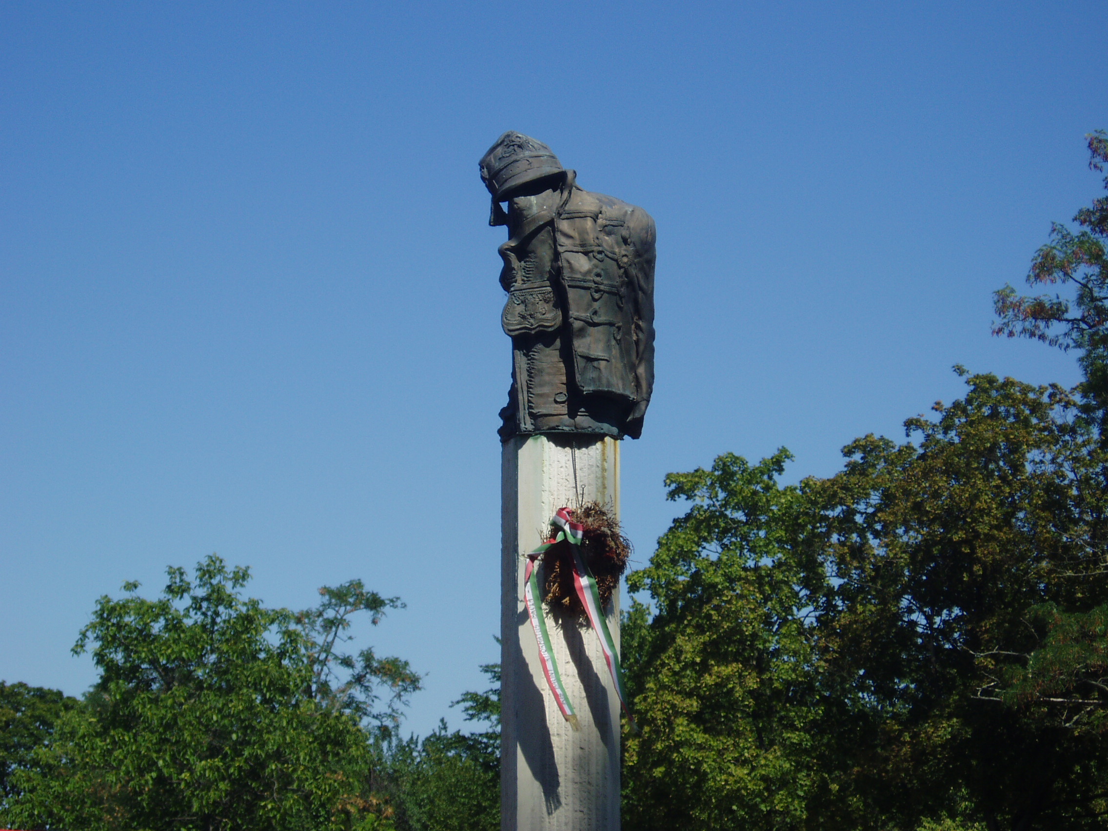 Nyilvános 979 | 1565 | Gyula, Várkert: Honvédtiszti emlékhely | A szabadságharc végén, 1849 augusztusában szomorú esemény színhelye lett Gyula. A világosi fegyverletételkor a magyar sereg tisztjei megtarthatták oldalfegyvereiket, s az oroszok Sarkadra, majd Gyulára kísérték őket. Az oroszok tüntetően jól bántak a magyar tisztekkel: eltávolították a grófi kastély elől az osztrák őröket, s együtt mentek a Korona vendéglőbe, ahol a cigánnyal a Rákóczi indulót és a Kossuth-nótát huzatták, senki nem gondolt arra, hogy a foglyok valaha is az osztrákok kezébe kerülnek. A mostani Groza park területén elhelyezett fogolytábort alig őrizték, többen polgári ruhát szerezve el is menekültek. A hagyomány szerint az araddi tizenhárom vértanú közül kilenc volt Gyulán: Aulich Lajos, Damjanich János, Kiss Ernő, Knezich Károly, Lahner György, Lázár Vilmos, Leiningen-Westenburg Károly, Nagy-Sándor József, Török Ignác. A tábornokokat magánházaknál szállásolták el, amelyeken ma emléktábláik olvashatók. Közülük csupán Lahner és Damjanich volt köteles a várkapu melletti cellában tölteni az éjszakát. Augusztus 21-én Rüdiger tábornok hozta Paszkievics parancsát, hogy a honvédtiszteket le kell fegyverezni és át kell adni az osztrákoknak. Augusztus 23-án a vár és a kastély közötti téren megkezdődött az 1300 honvédtiszt lefegyverzése. Másnap az oroszok átadták őket az osztrákoknak, akik 200 szekérrel szállították őket Aradra. E szomorú történelmi esemény 140. évfordulója alkalmából alakították ki 1989-ben a vár északi fala mögött az emlékhelyet, Máté István szobrász és Szemerei Márta építész alkotását. A posztamensen álló kilenc szobor az 1849. október 6-án kivégzett kilenc tábornokot szimbolizálja. A fénykép 2007 júliusában készült. Felh. irod.: Czeglédi Imre: Gyula útikalauz. 2. jav., bőv. kiad. Gyula, 1995 |