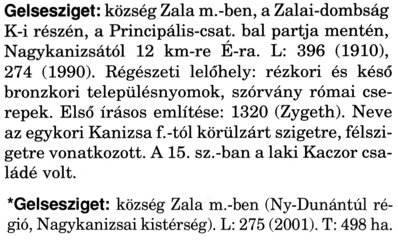 Nyilvános 2044 | 5898 | A szócikkek felismertetett szövege: | (A csillag után a kiegészítő kötetből származó szöveg következik) Gelsesziget: község Zala m.-ben, a Zalai-dombság K-i részén, a Principális-csat. bal partja mentén, Nagykanizsától 12 km-re É-ra. L: 396 (1910), 274 (1990). Régészeti lelőhely: rézkori és késő bronzkori településnyomok, szórvány római cserepek. Első írásos említése: 1320 (Zygeth). Neve az egykori Kanizsa f.-tól körülzárt szigetre, félszigetre vonatkozott. A 15. sz.-ban a laki Kaczor családé volt. *Gelsesziget: község Zala m.-ben (Ny-Dunántúl régió, Nagykanizsai kistérség). L: 275 (2001). T: 498 ha. A szócikkek a következő lexikonból származnak: Cím: Magyar nagylexikon Közreműködő: Élesztős László (1949) (szerk.) ; Barabás Éva (1943) (szerk.) ; Berényi Gábor (1946) (szerk.) ; Bárány Lászlóné (szerk.) ; Adelmann-né Kertész Judit (1945) (közrem.) ; Froemel Károlyné Jáky Éva (1936) (közrem.) ; Akadémiai Kiadó és Nyomda Vállala Szerz. közl.: [... Élesztős László főszerk.] ; [szerk. Barabás Éva et al.] ; [bibliogr. Adelmanné Kertész Judit] ; [kész. az Akadémiai Kiadó Magyar Nagylexikon Szerkesztőségében] Kiadás: Budapest : Akad. K., 1993- Kötetei: 1. köt., A - Anc 2. köt., And - Bag 3. köt., Bah - Bij 4. köt., Bik - Bz 5. köt., C - Csem 6. köt., Csen - Ec 7. köt., Ed - Fe 8. köt., Ff - Gyep 9. köt., Gyer - Iq 10. köt., Ir - Kip 11. köt., Kir - Lem 12. köt., Len - Mep 13. köt., Mer - Nyk 14. köt., Nyl - Pom 15. köt., Pon - Sek 16. köt., Sel - Szö 17. köt., Szp - Ung 18. köt., Unh - Z 19. köt., Kiegészítő kötet, A - Z ETO jelzet: 030=945.11 Szakjelzet: 030 Cutter: M 14 ISBN: 963-05-6611-7 [!ISBN 963-05-6615-X] Nyelv: magyar Megjegyzés: Az 5. kötettől kiad. a Magyar Nagylexikon Kiadó ; A 6. kötettől főszerk. Berényi Gábor ; A 6. kötettől szakszerk. Bárány Lászlóné et al. ; A 6. kötettől bibliogr. Froemel Károlyné ; Bibliogr. a szócikkek végén |