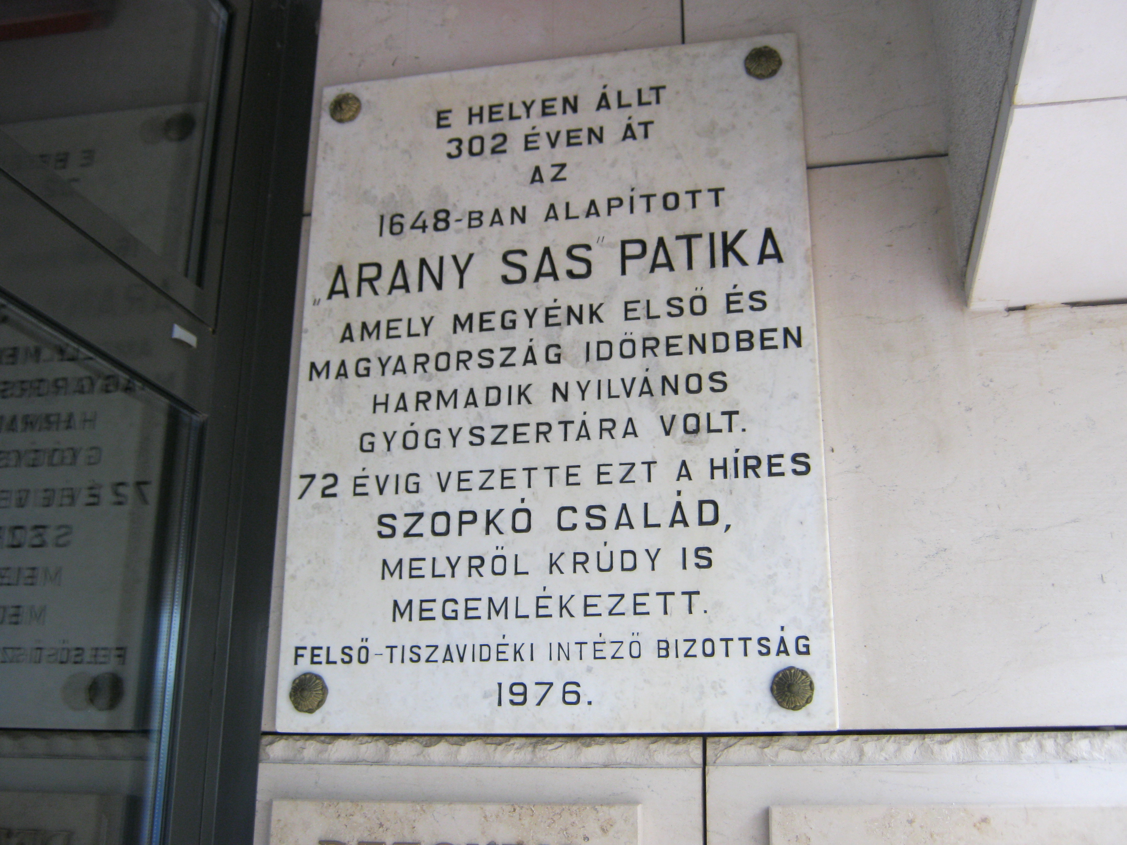 A modern épület helyén egykor a híres Arany Sas patika épülete állott, amelyet Krúdy Gyula is többször említett írásaiban.