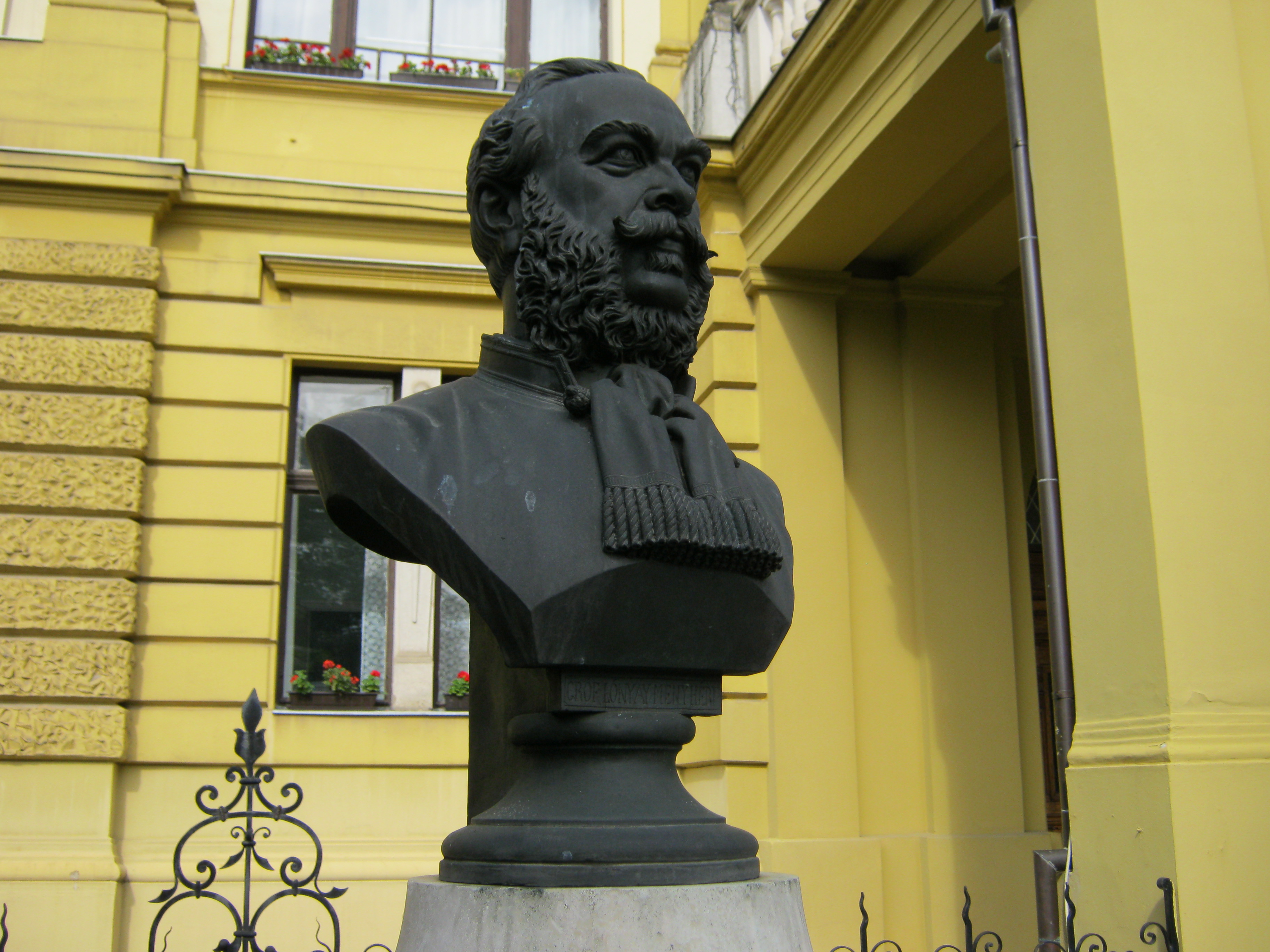 Nyilvános 956 | 1384 | Nyíregyháza, Hősök tere 5. Megyeháza | Az eklektikus stílusú megyeháza 1891-1892-ben, Alpár Ignác tervei szerint épült. Homlokzatát Szabolcs vezér és az államalapító István király szobrai díszítik. Az épületplasztikák és díszítmények Verán József munkái. Nyíregyháza 1876-ban lett megyeszékhely, korábban Nagykálló töltötte be ezt a szerepet. Az épület előtt látható Lónyay Menyhért (1822-1884) mellszobra, Győrfi Sándor 2000-ben felállított munkája. Mintájául egy, a grófot ábrázoló carrarai márványszobor, gróf Vay István alkotása szolgált. A beregi kötődésű Lónyay pénzügyminiszter, majd 1871/72-ben miniszterelnök volt. Felh. irod.: Látnivalók Szabolcs-Szatmár-Bereg megyében. Miskolc, Well-PRess, 1999 www.szoborlap.hu A fénykép 2010 augusztus elején készült. |