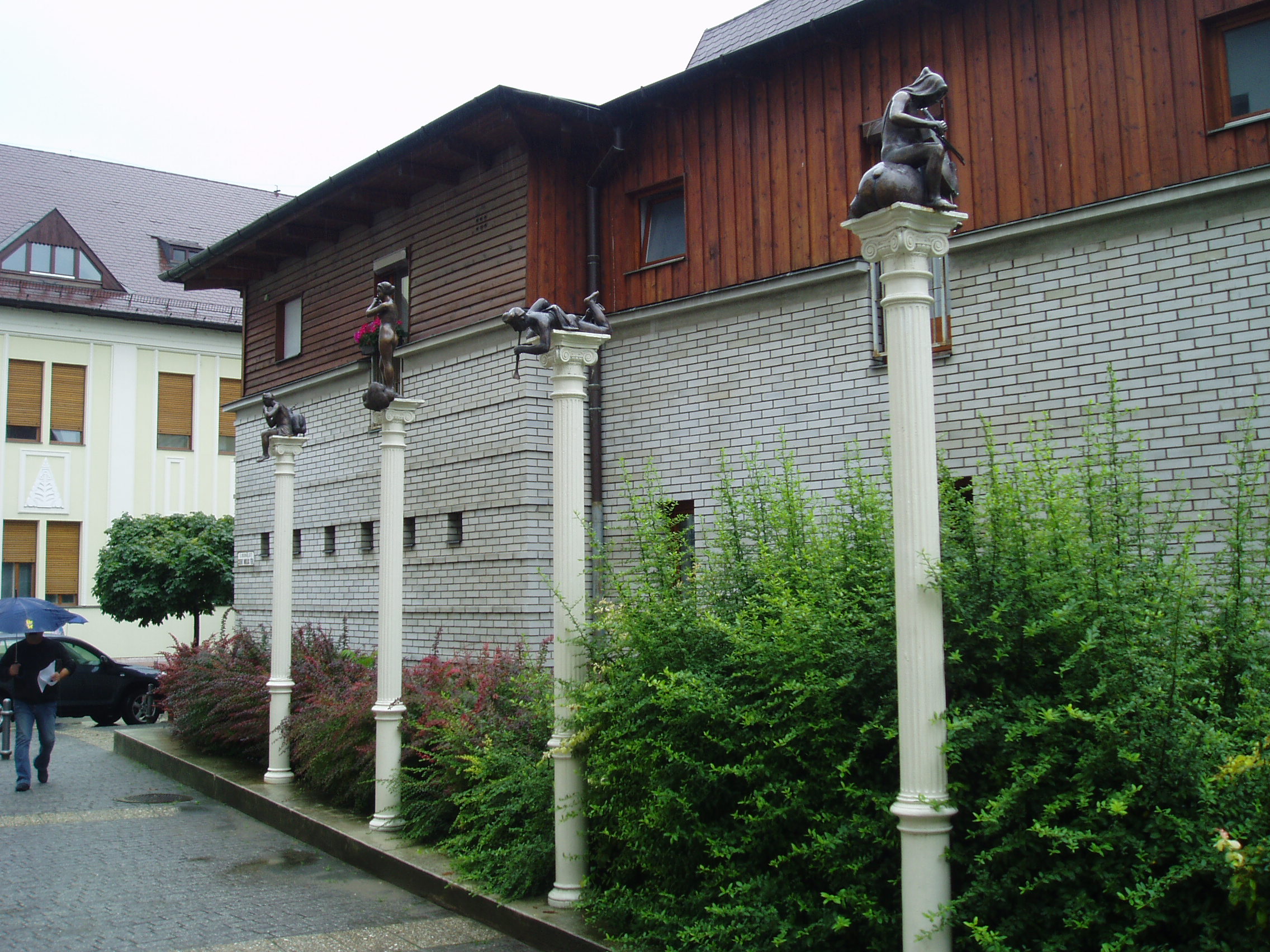 Nyilvános 795 | 2677 | Nyíregyháza, Szent Miklós tér: Szent Miklós szobra | A Szent Miklós tér Tóth Sándor Szent Miklós szobra mellett más látnivalókat is kínál. 2009 szeptemberében helyezték el Zagyva László négy, a négy évszakot muzsikálók alakjában megjelenítő szobrait a téren álló görög stílű oszlopokon. Felhaszn. irod.: www.szoborlap.hu A fénykép 2010 augusztus elején készült |