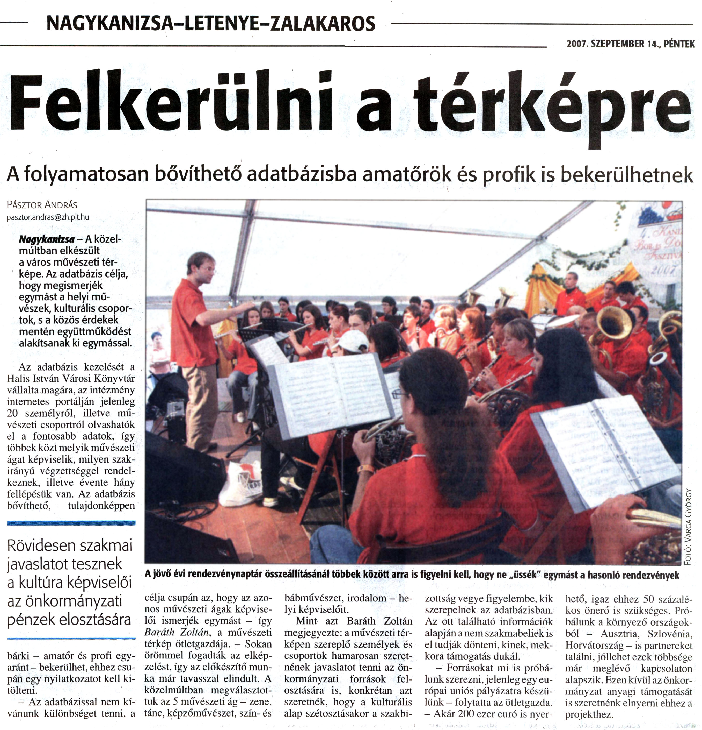 Nyilvános 1352 | 3347 | Zalai Hírlap 2007. szeptember 14. 215. szám 8. oldal | Felkerülni a térképre A folyamatosan bővíthető adatbázisba amatőrök és profik is bekerülhetnek PÁSZTOR ANDRÁS pasztor.andras@zh.plt.hu Nagykanizsa - A közelmúltban elkészült a város művészeti térképe. Az adatbázis célja, hogy megismerjék egymást a helyi művészek, kulturális csoportok, s a közös érdekek mentén együttműködést alakítsanak ki egymással. Az adatbázis kezelését a Halis István Városi Könyvtár vállalta magára, az intézmény internetes portálján jelenleg 20 személyről, illetve művészeti csoportról olvashatók el a fontosabb adatok, így többek közt melyik művészeti ágat képviselik, milyen szakirányú végzettséggel rendelkeznek, illetve évente hány fellépésük van. Az adatbázis bővíthető, tulajdonképpen bárki — amatőr és profi egyaránt - bekerülhet, ehhez csupán egy nyilatkozatot kell kitölteni. - Az adatbázissal nem kívánunk különbséget tenni, a célja csupán az, hogy az azonos művészeti ágak képviselői ismerjék egymást - így Baráth Zoltán, a művészeti térkép ötletgazdája. - Sokan örömmel fogadták az elképzelést, így az előkészítő munka már tavasszal elindult. A közelmúltban megválasztottuk az 5 művészeti ág - zene, tánc, képzőművészet, szín- és bábművészet, irodalom - helyi képviselőit. Mint azt Baráth Zoltán megjegyezte: a művészeti térképen szereplő személyek és csoportok hamarosan szeretnének javaslatot tenni az önkormányzati források felosztására is, konkrétan azt szeretnék, hogy a kulturális alap szétosztásakor a szakbizottság vegye figyelembe, kik szerepelnek az adatbázisban. Az ott található információk alapján a nem szakmabeliek is el tudják dönteni, kinek, mekkora támogatás dukál. - Forrásokat mi is próbálunk szerezni, jelenleg egy európai uniós pályázatra készülünk - folytatta az ötletgazda. — Akár 200 ezer euró is nyerhető, igaz ehhez 50 százalékos önerő is szükséges. Próbálunk a környező országokból - Ausztria, Szlovénia, Horvátország — is partnereket találni, jóllehet ezek többsége már meglévő kapcsolaton alapszik. Ezen kívül az önkormányzat anyagi támogatását is szeretnénk elnyerni ehhez a projekthez. |