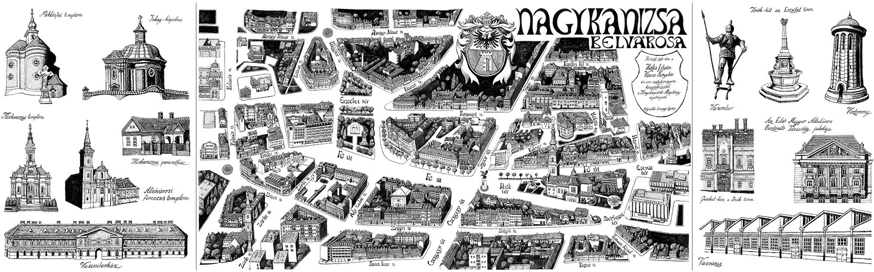 Nyilvános 1922 | 8444 | Nagykanizsa belvárosa madártávlati képe - Somogyi Győző alkotása - nagy méretben megtekinthető a könyvtárban, kis méretben meg is vásárolható a könyvtártól: | A 30x100 cm-es Nagykanizsa belvárosa madártávlati kép érvényes olvasói tagsággal rendelkezők számára 200 Ft-ba kerül, egyébként 300 Ft, fóliázott változatban 600 Ft (olvasóinknak 500 Ft). |