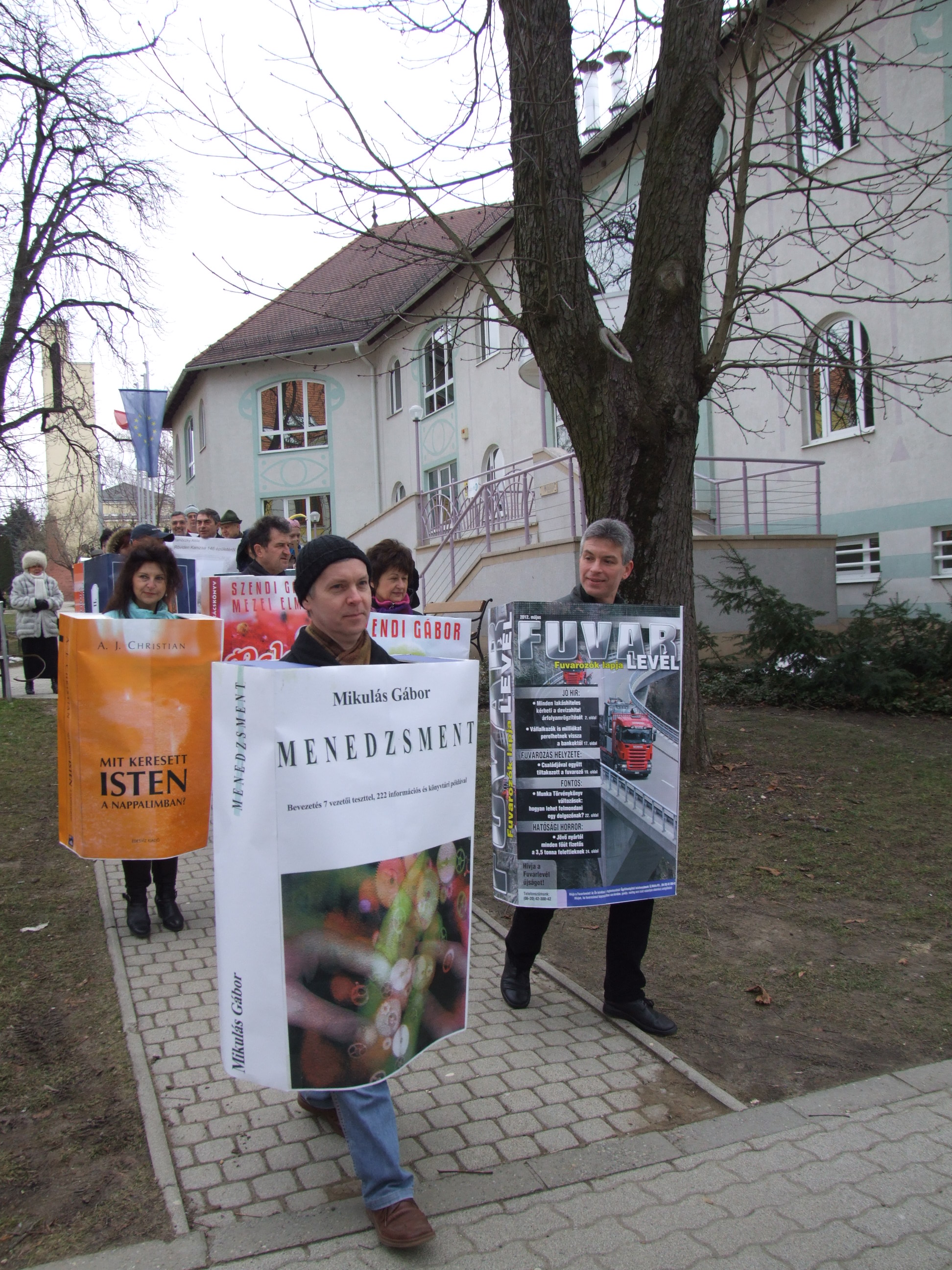 Nyilvános 1324 | 2896 | Rövid leírás | Teljes leírás (446 B) | 2013. február 9. A farsangi fánkfesztiválra készülve felhívásban kértük olvasóinkat, hogy öltsék magukra kedves könyvüket. Egy „könyvespolcnyi” jelentkező vette magára kedves olvasmányát, az ő vonulásukról készültek ezek a képek. A környezetükben néhol láthatók a Nagykanizsai Gólyalábasok, akik szintén a könyvtárhoz kötődnek. A „felvonuló kötetek” a könyvtár épületében még megtekinthetők. |