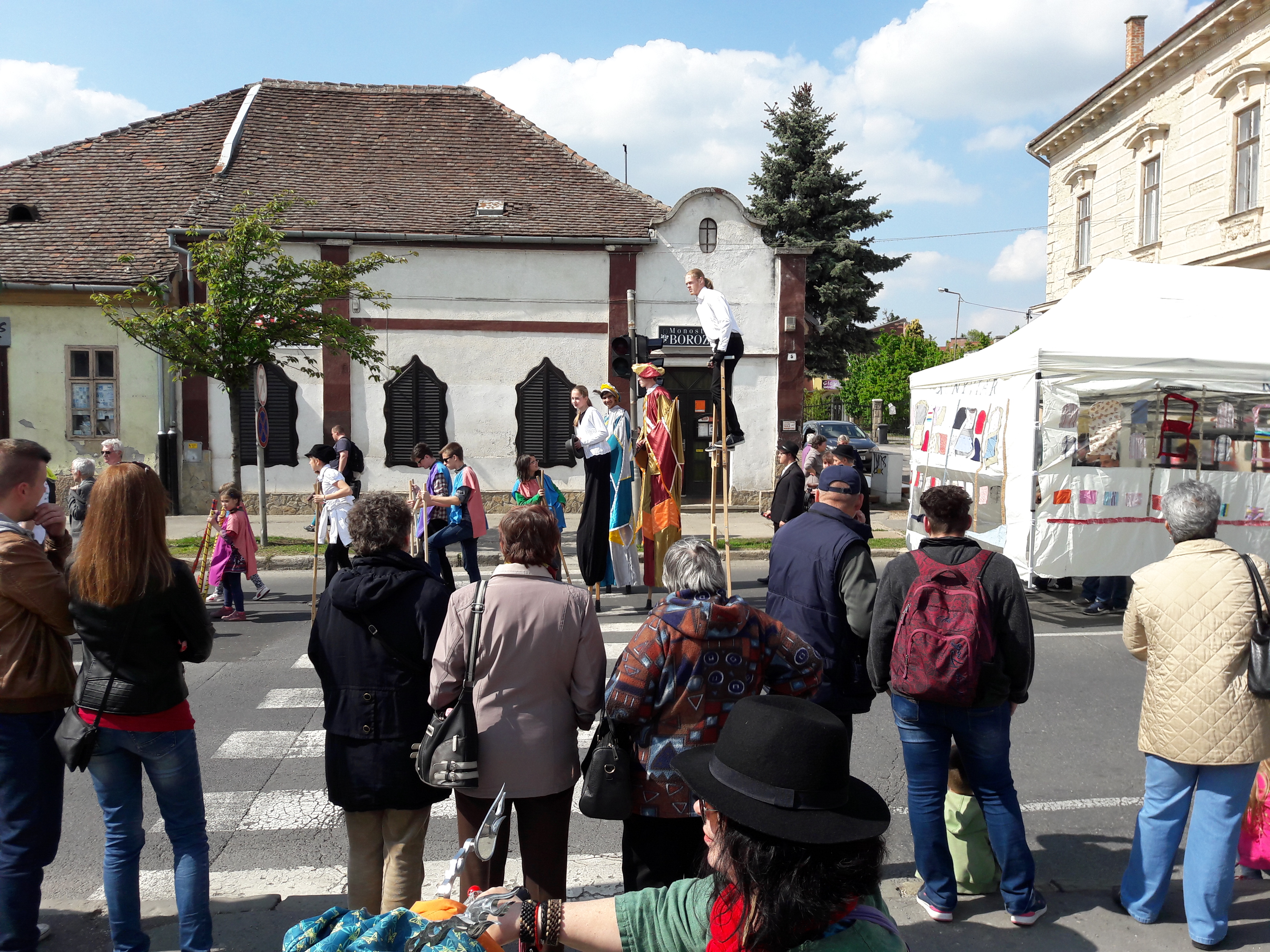 2017.04.30. Utca Tánc Fesztivál - Vonulás - Gólyalábasok, fekete kalapos táncosok, meridián tornások