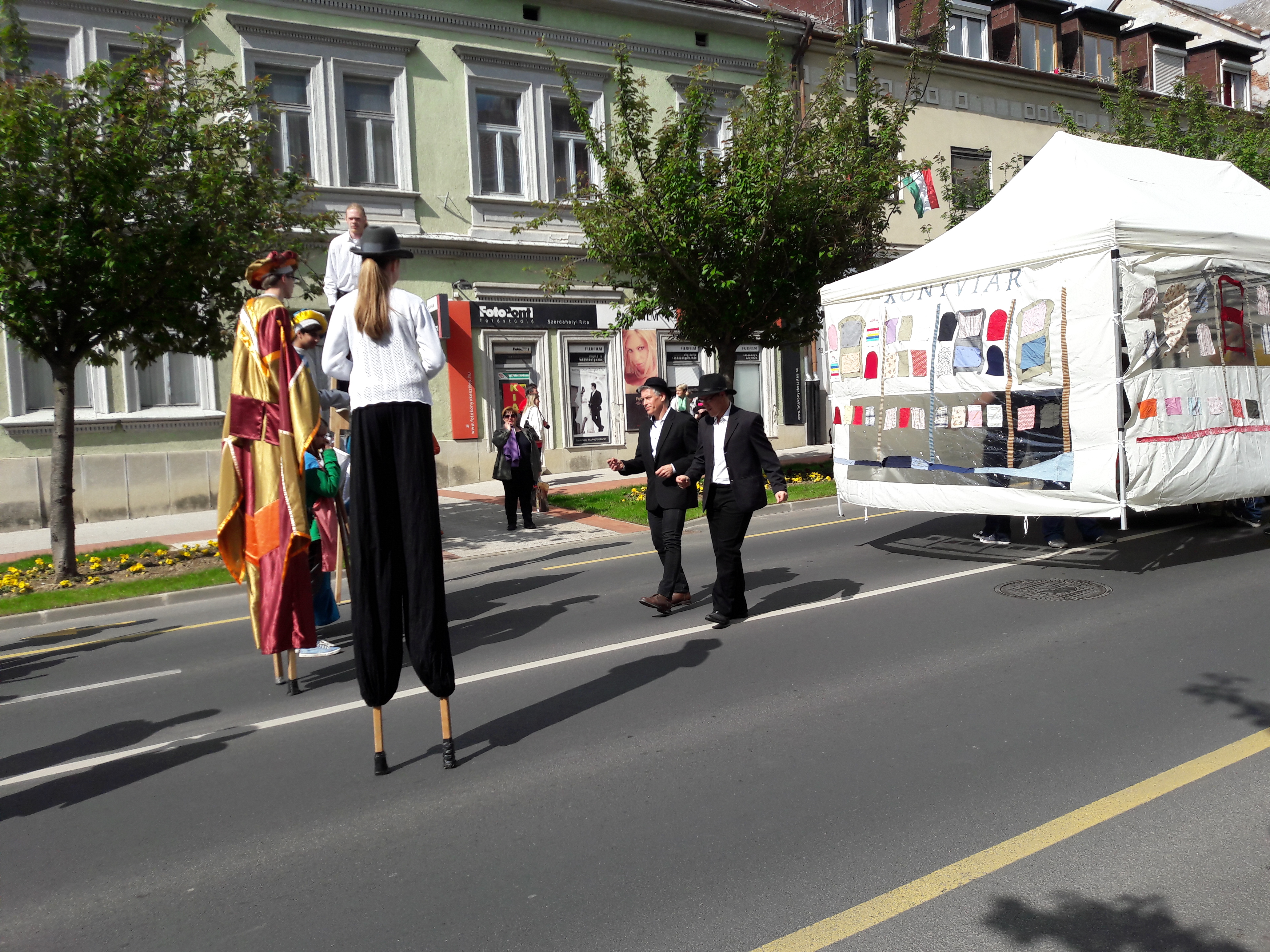 2017.04.30. Utca Tánc Fesztivál - Vonulás - Gólyalábasok, fekete kalapos táncosok, meridián tornások